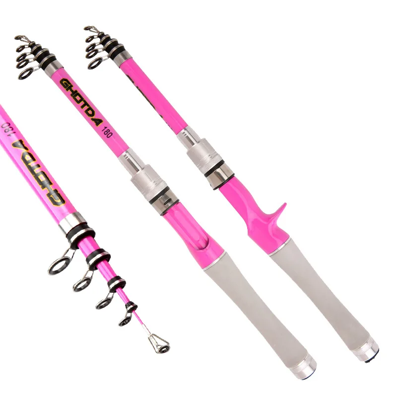 Cañas de pescar telescópicas de viaje corto de alta sensibilidad, 1,5/1,8/2,1/2,4 M, caña de pescar giratoria rosa de fibra de carbono