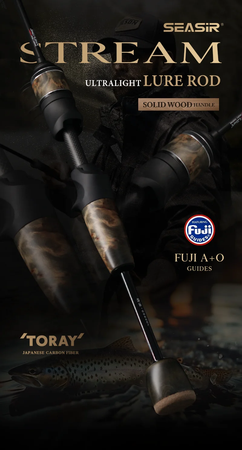 La caña Stream comienza con una increíble fibra de carbono liviana de alta resistencia TORAY 40t, un asiento de carrete liviano y competitivo, que no solo garantiza la resistencia general, la sensibilidad y la precisión, sino que también proporciona una caña de pescar más liviana para mantener el flujo de potencia, 5 pies pesa sólo 78-86 g.Diseño ultraligero que no se sentirá cansado incluso después de un uso prolongado.