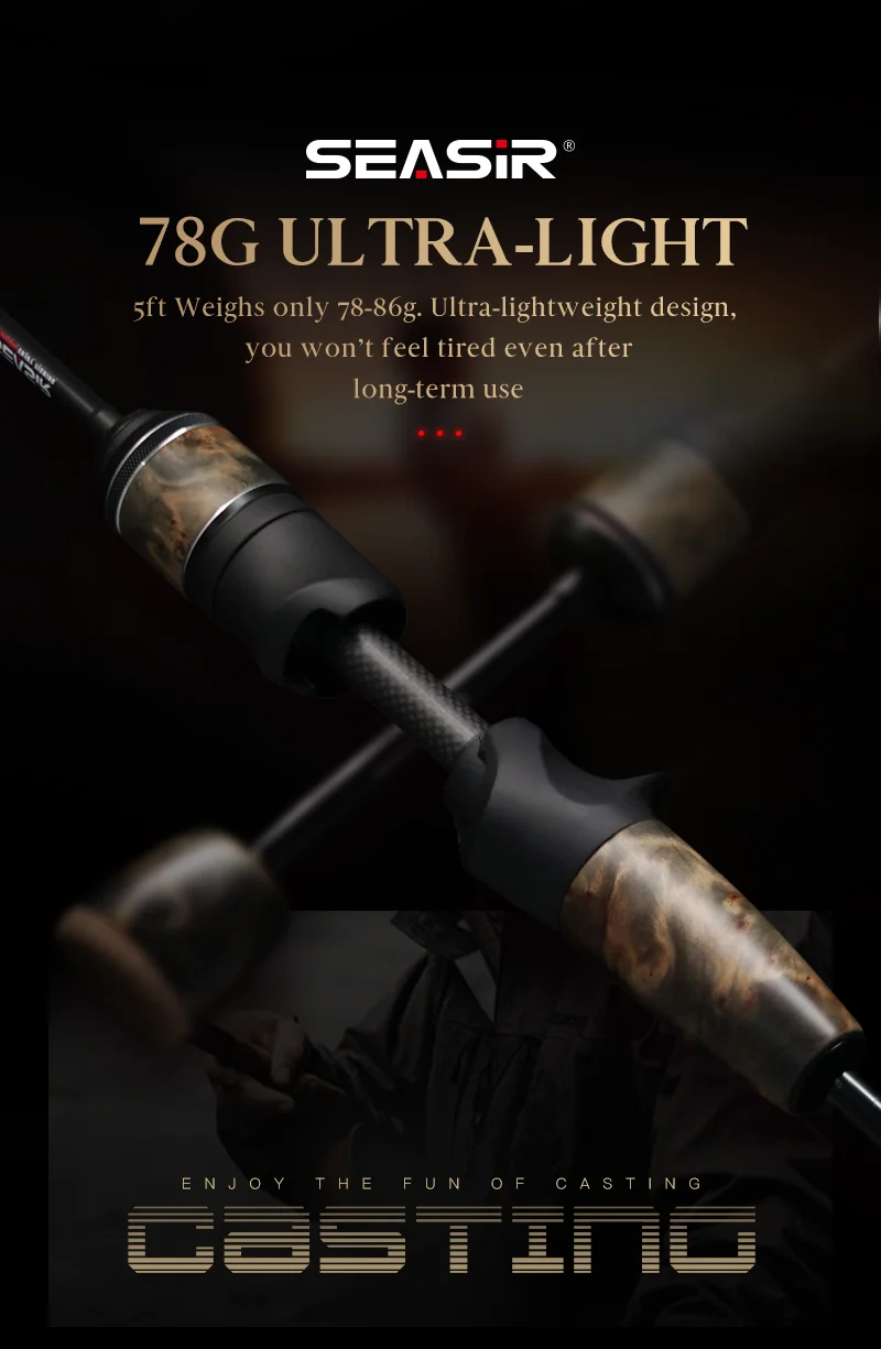 ¡La caña de lanzamiento/spinning SEASIR stream ofrece un valor y un rendimiento excepcionales para cada pescador y aplicación de pesca!UL/L puede hacer frente a más entornos de pesca y especies de peces. Estas cañas de pescar están diseñadas para pescadores que buscan una caña increíble a un precio asequible.
