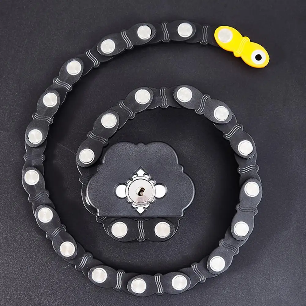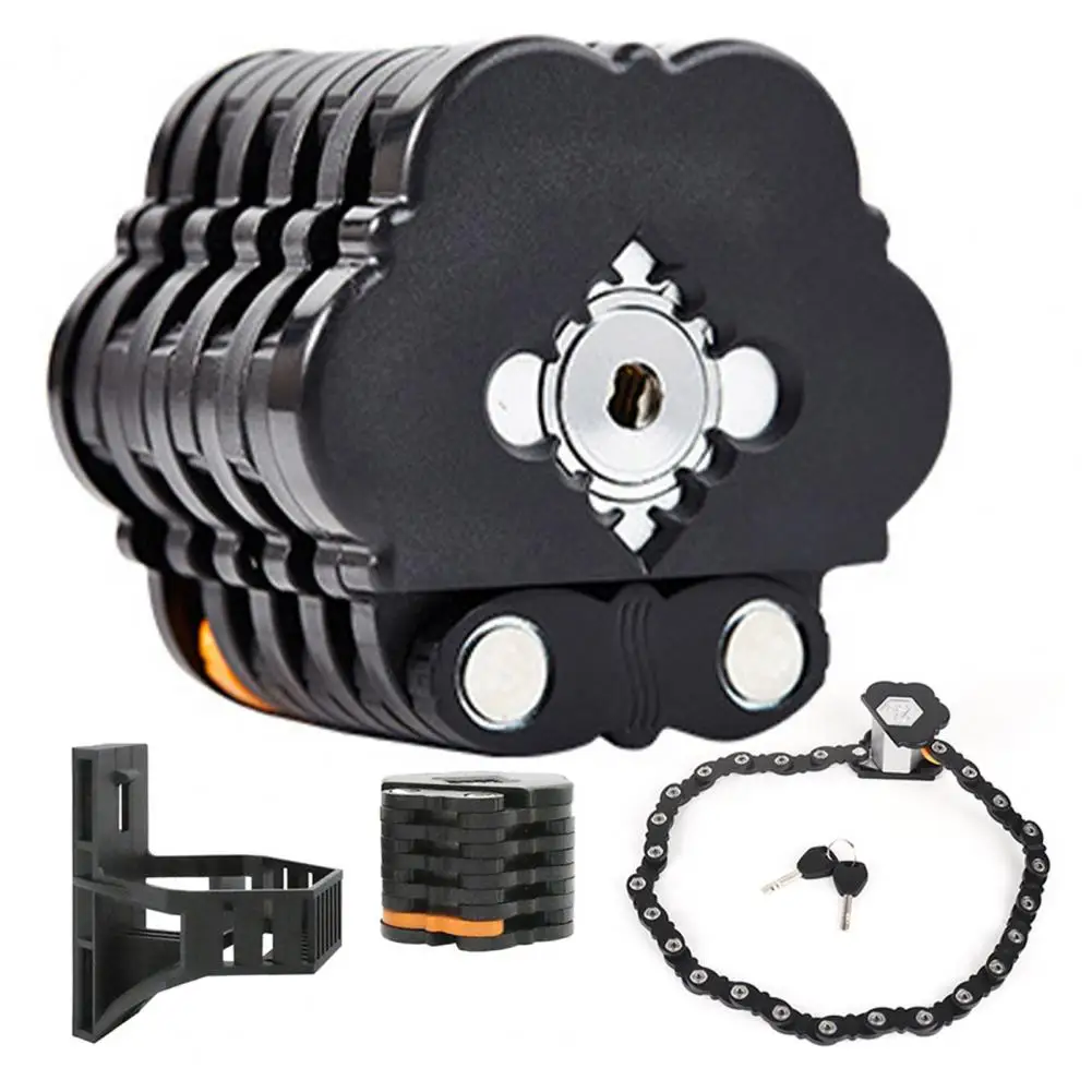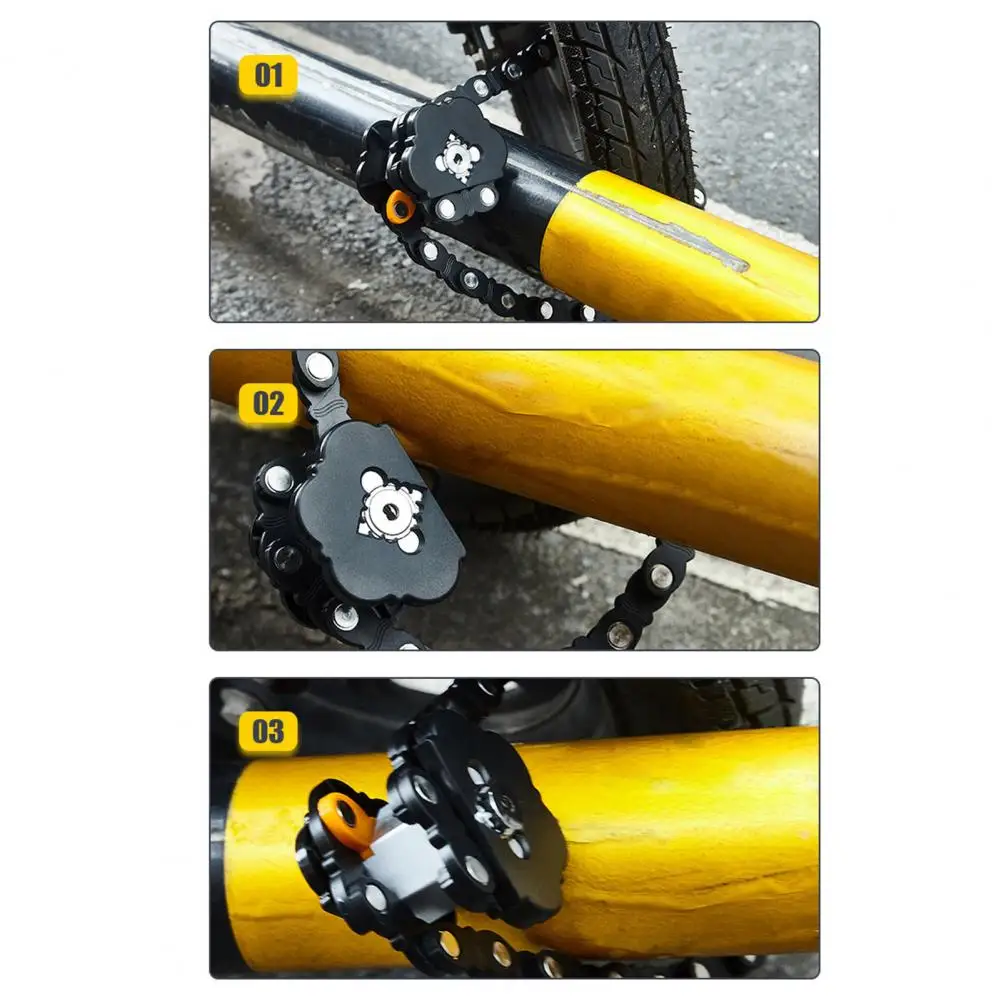 Construcción duradera y resistente: fabricado con aleación de zinc de alta calidad y material ABS, este candado de cadena plegable ofrece sólidas propiedades antirrobo y anticorte.Los componentes de cobre y acero inoxidable brindan mayor seguridad contra manipulaciones, ofreciendo tranquilidad para la seguridad de su bicicleta.