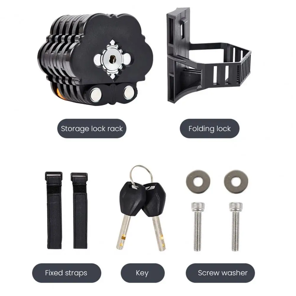 Fácil de transportar, estructura compacta: con un peso de solo 708 gramos, este candado para bicicleta es liviano y portátil, ideal para la mayoría de los tipos de bicicletas.El diseño del remache permite un plegado sin esfuerzo, lo que lo hace cómodo de transportar y garantiza una protección confiable.