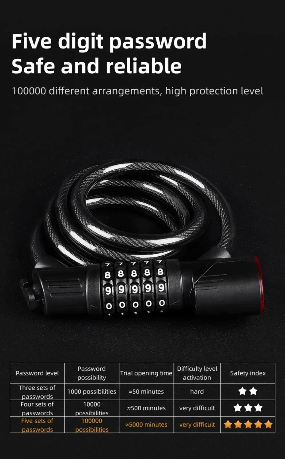 * Código de seguridad de 5 dígitos: este candado viene con un código de seguridad de 5 dígitos para proteger su bicicleta contra robos.