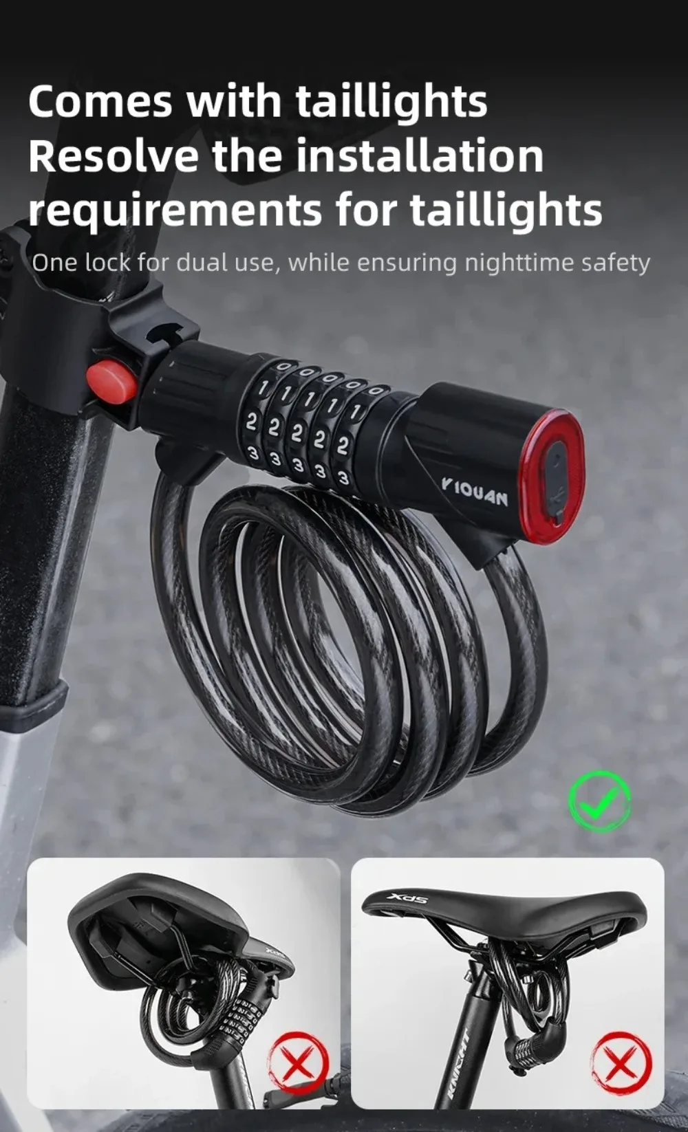 Package include: 1 * Bicycle Lock with Tail Light