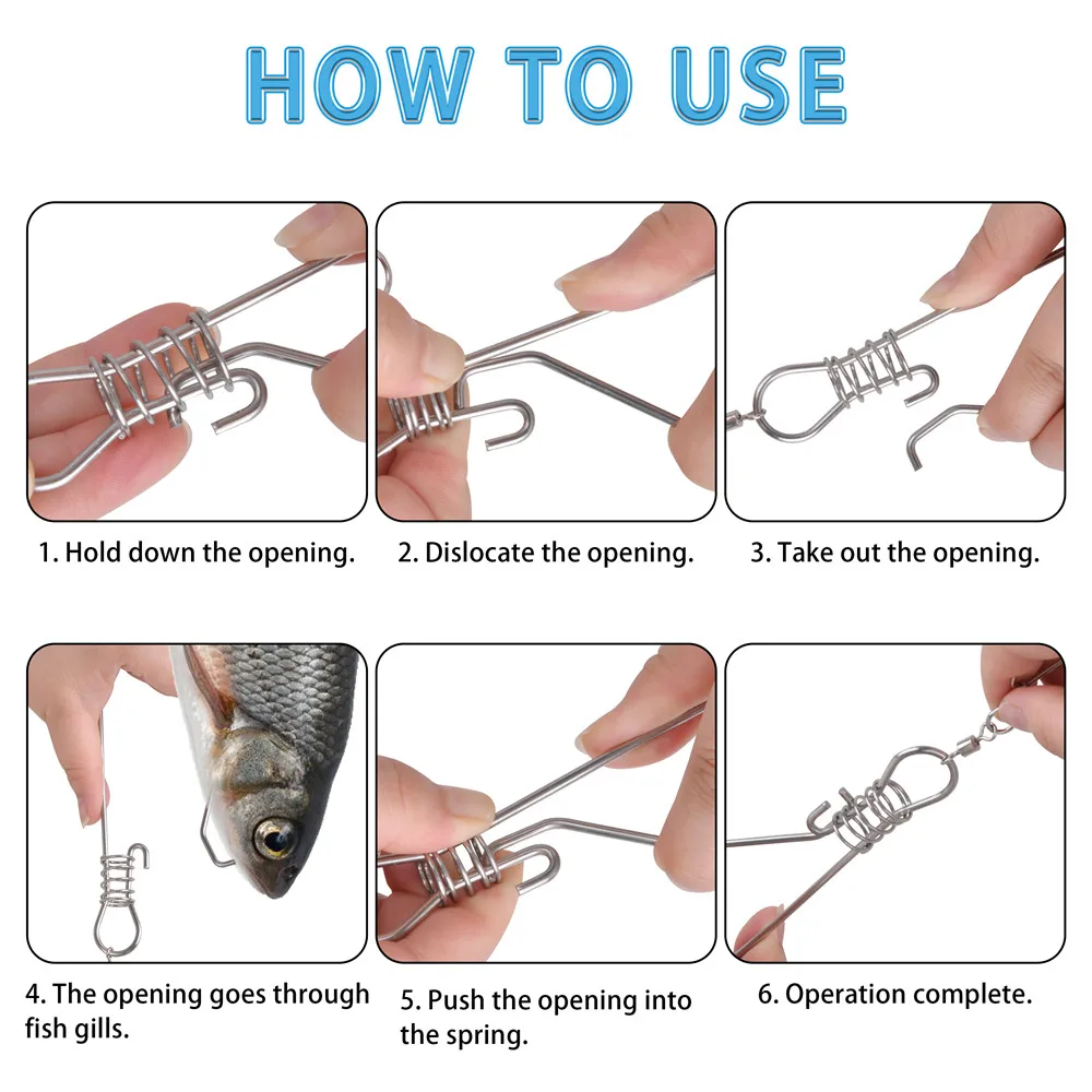 Material: Clip de bloqueo de pesca de acero inoxidable