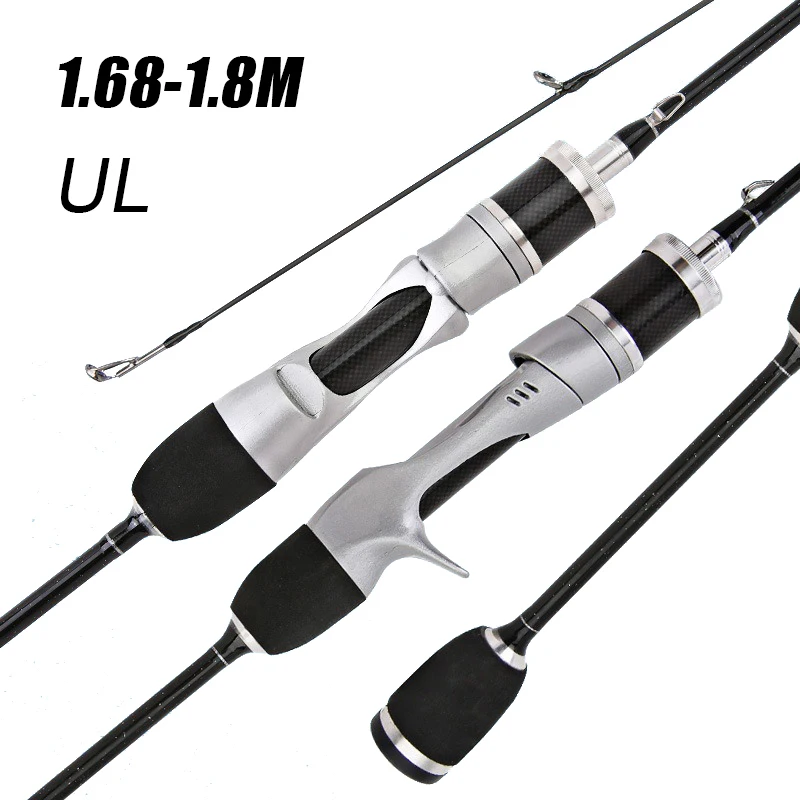 Canna de pescar de fundición giratoria UL, sistema Finesse de cebo pequeño, fibra de carbono ultraligera, 2 piezas, 1,68-1,8 m, 1-8g, para caña de pescar de trucha