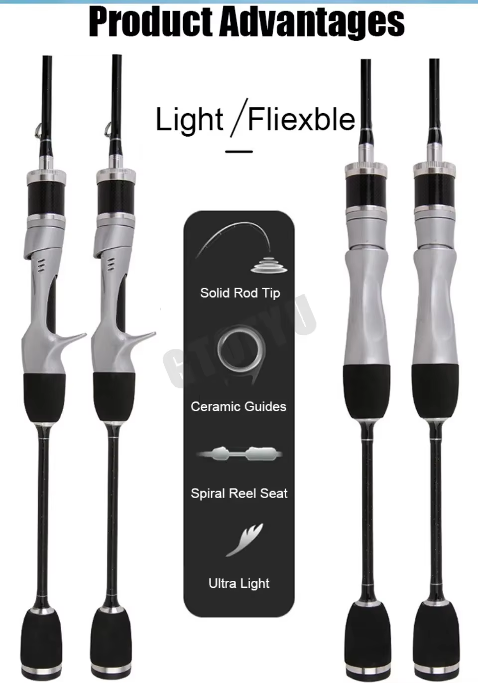 Canna de pescar de fundición giratoria UL, sistema Finesse de cebo pequeño, fibra de carbono ultraligera, 2 piezas, 1,68-1,8 m, 1-8g, para caña de pescar de trucha