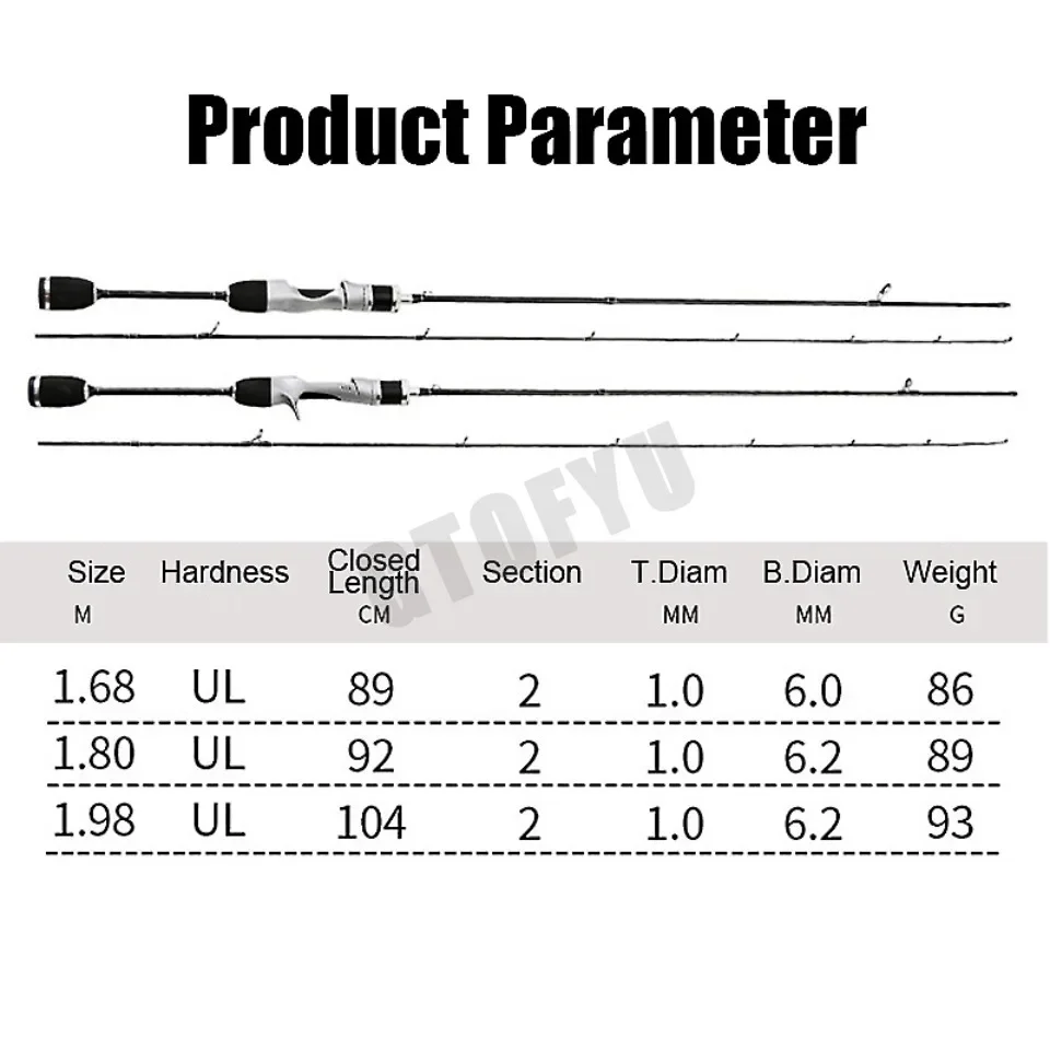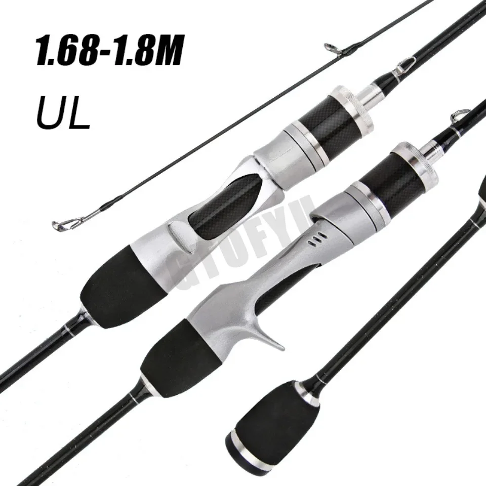 Canna de pescar de fundición giratoria UL, sistema Finesse de cebo pequeño, fibra de carbono ultraligera, 2 piezas, 1,68-1,8 m, 1-8g, para caña de pescar de trucha
