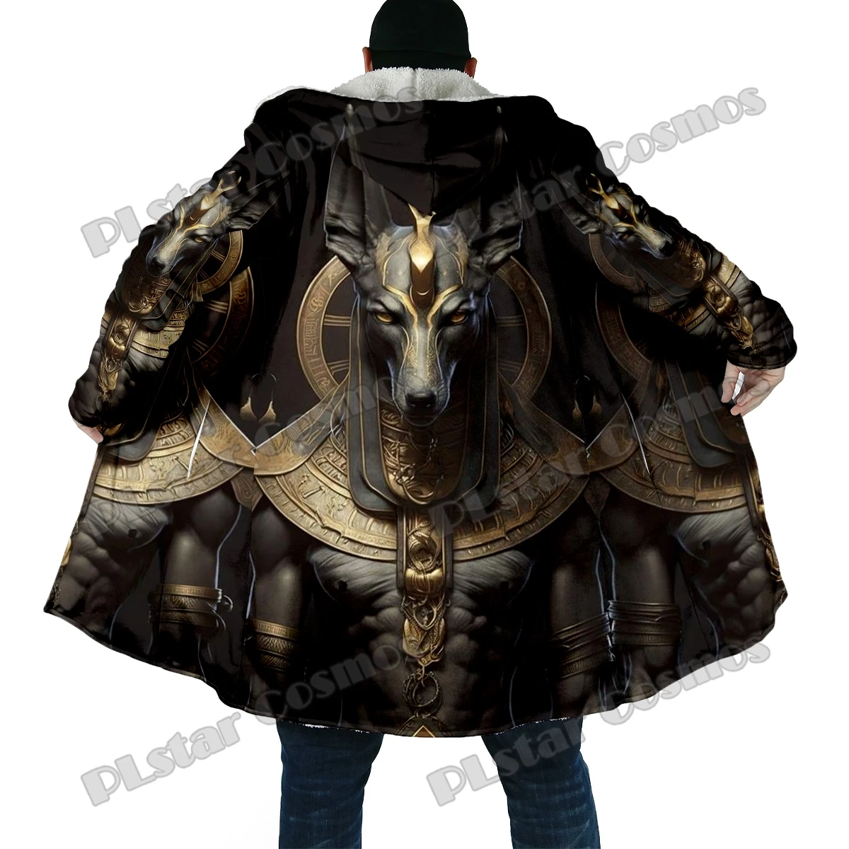 Capa de invierno a la moda para hombre, capa con capucha de lana gruesa con estampado 3D de Ankh y calavera del Antiguo Egipto, capa cálida informal Unisex DP37