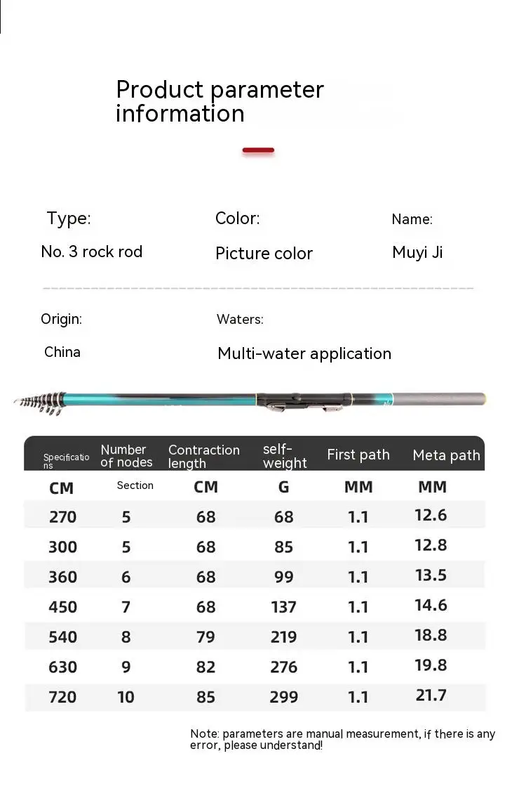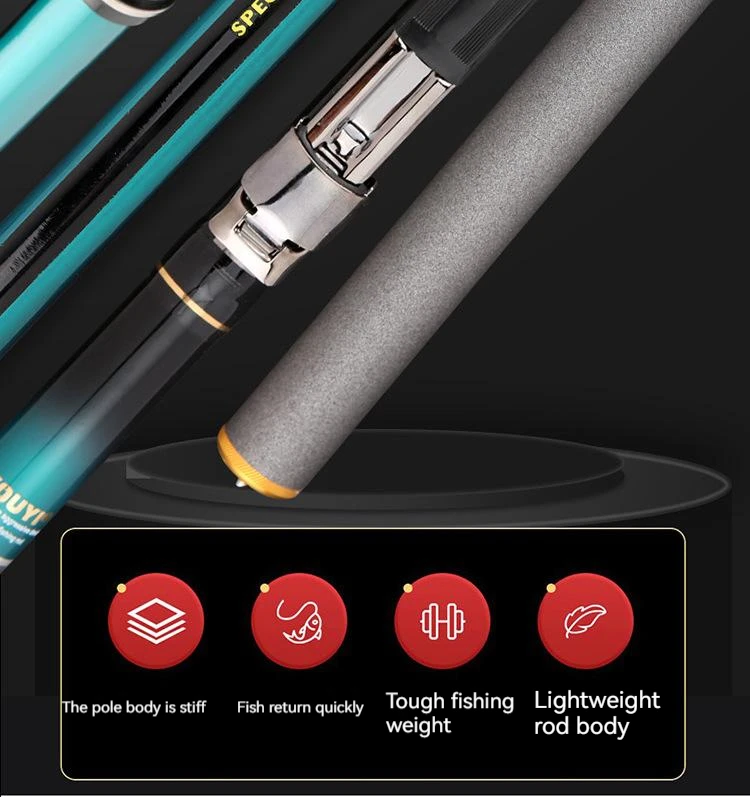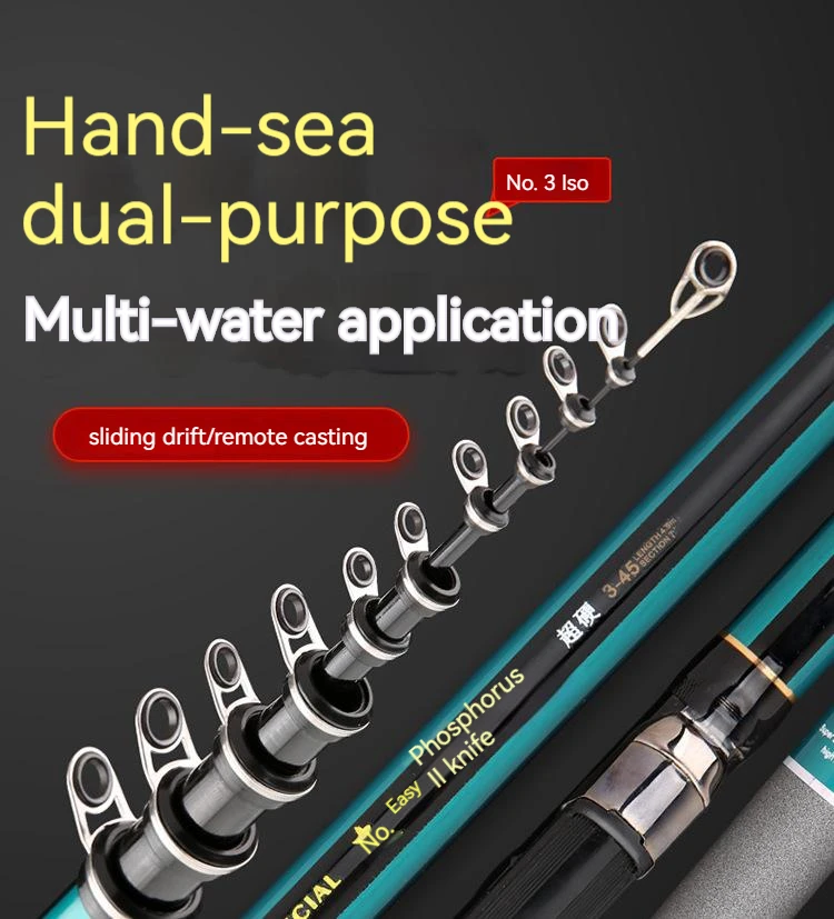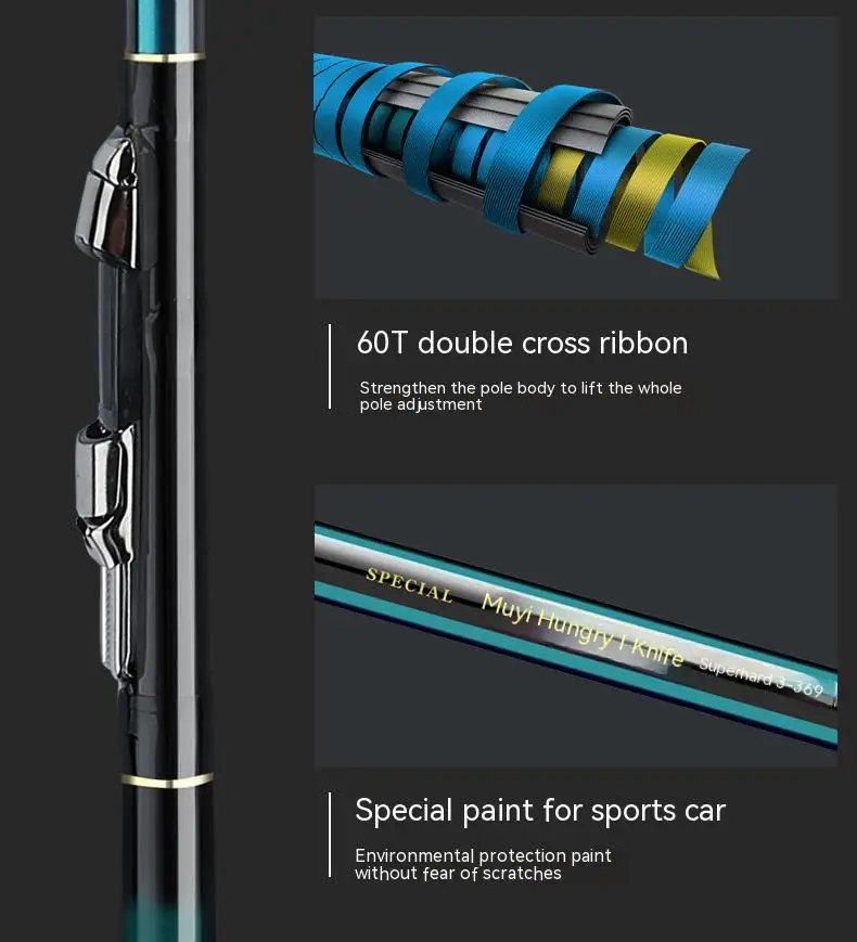 Carbono No. 3 cañas de pescar en roca, caña de mano ultradura de 2,7-7,2 m, caña de pescar giratoria telescópica para pesca con alimentador de largo alcance
