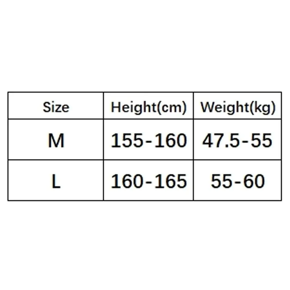 L Size:Height:160-165cm(62.99-64.96in),Weight:55-60kg