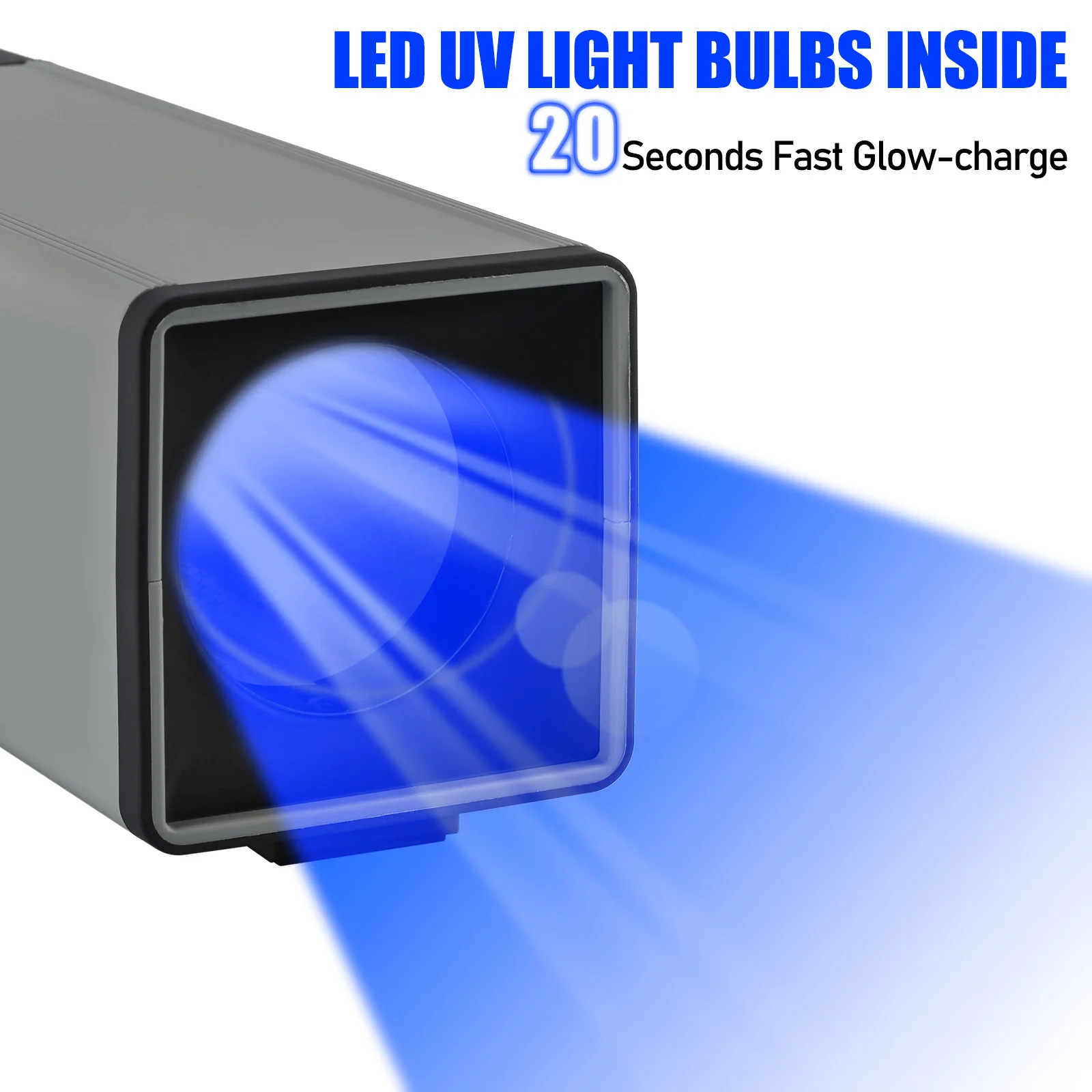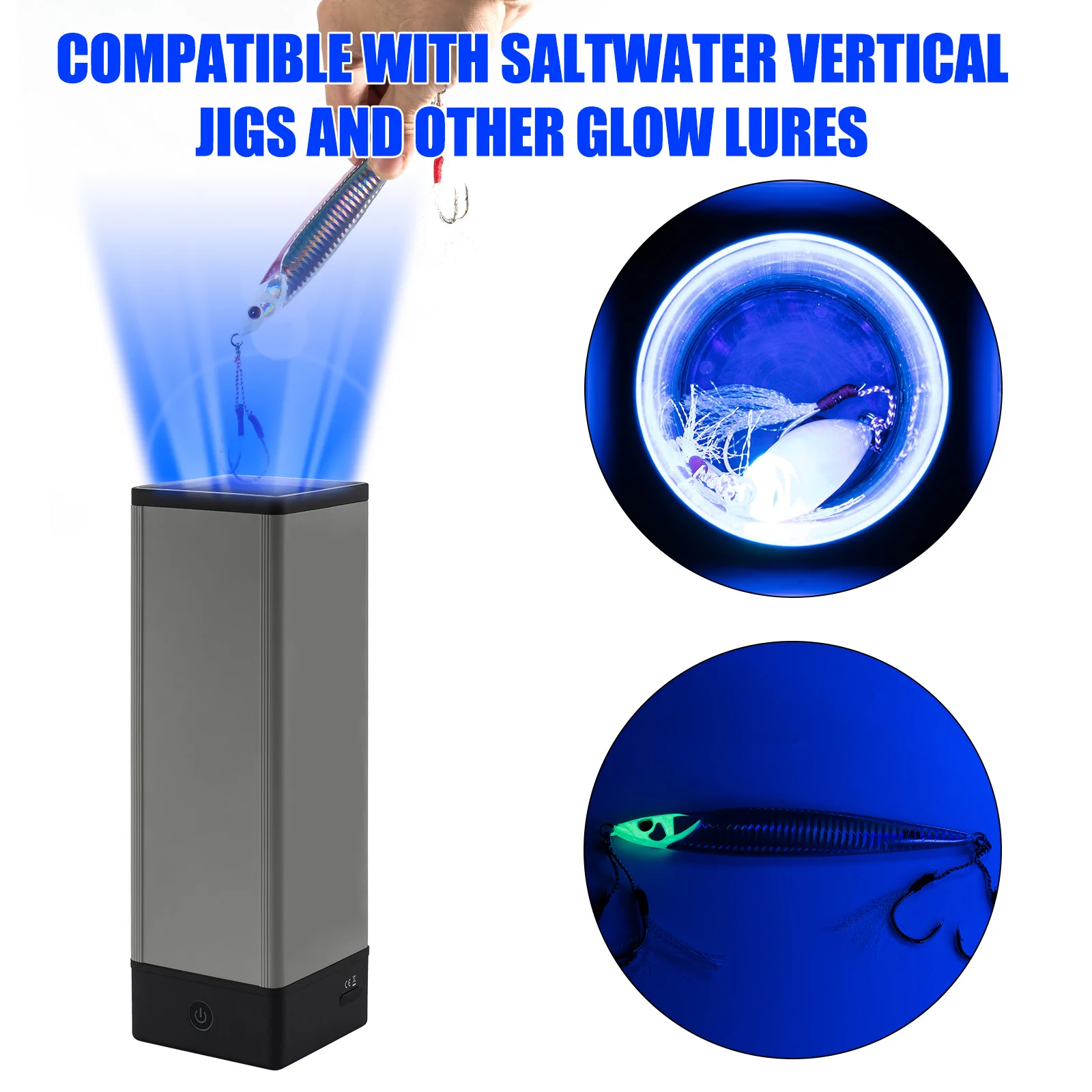 Versátil:Con las bombillas, este cargador de luz se apagará automáticamente después de cargar los señuelos durante 20 segundos, por lo que es adecuado para su uso en grandes plantillas verticales de agua salada, pero también se puede utilizar en otros señuelos blandos y señuelos duros. Además, tiene una duración de la batería de 16 horas, lo que garantiza que los pescadores no se queden sin carga mientras pescan.