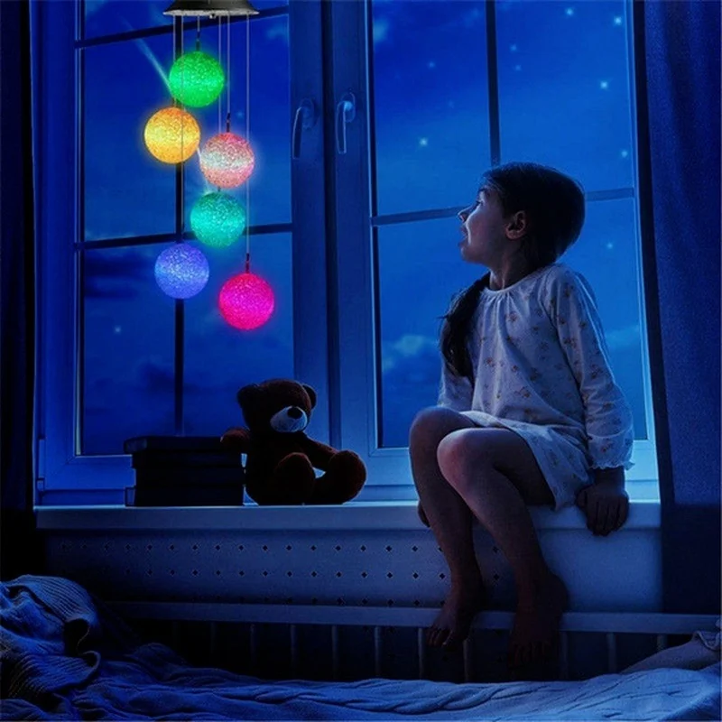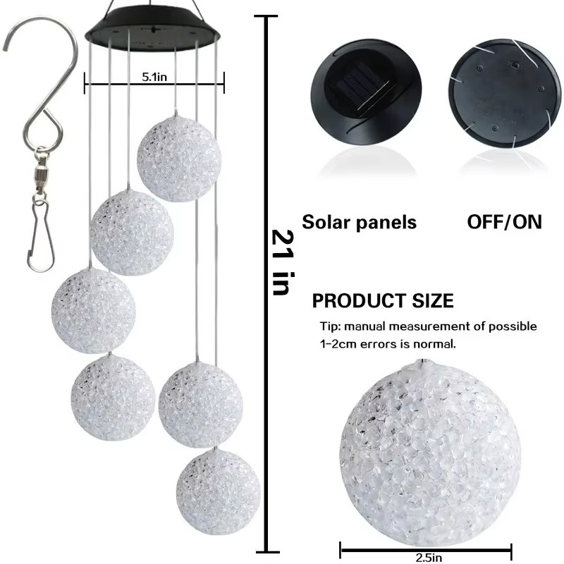 1 carillón de viento de bola de cristal alimentado por energía solar