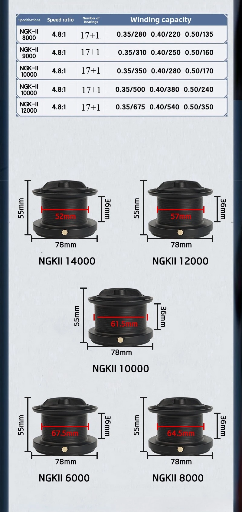 Carrete de aleación de aluminio con rueda giratoria de fundición larga serie 8000-14000 anticorrosión 4,8: 1, carrete de pesca de alta velocidad, carrete de baitcasting
