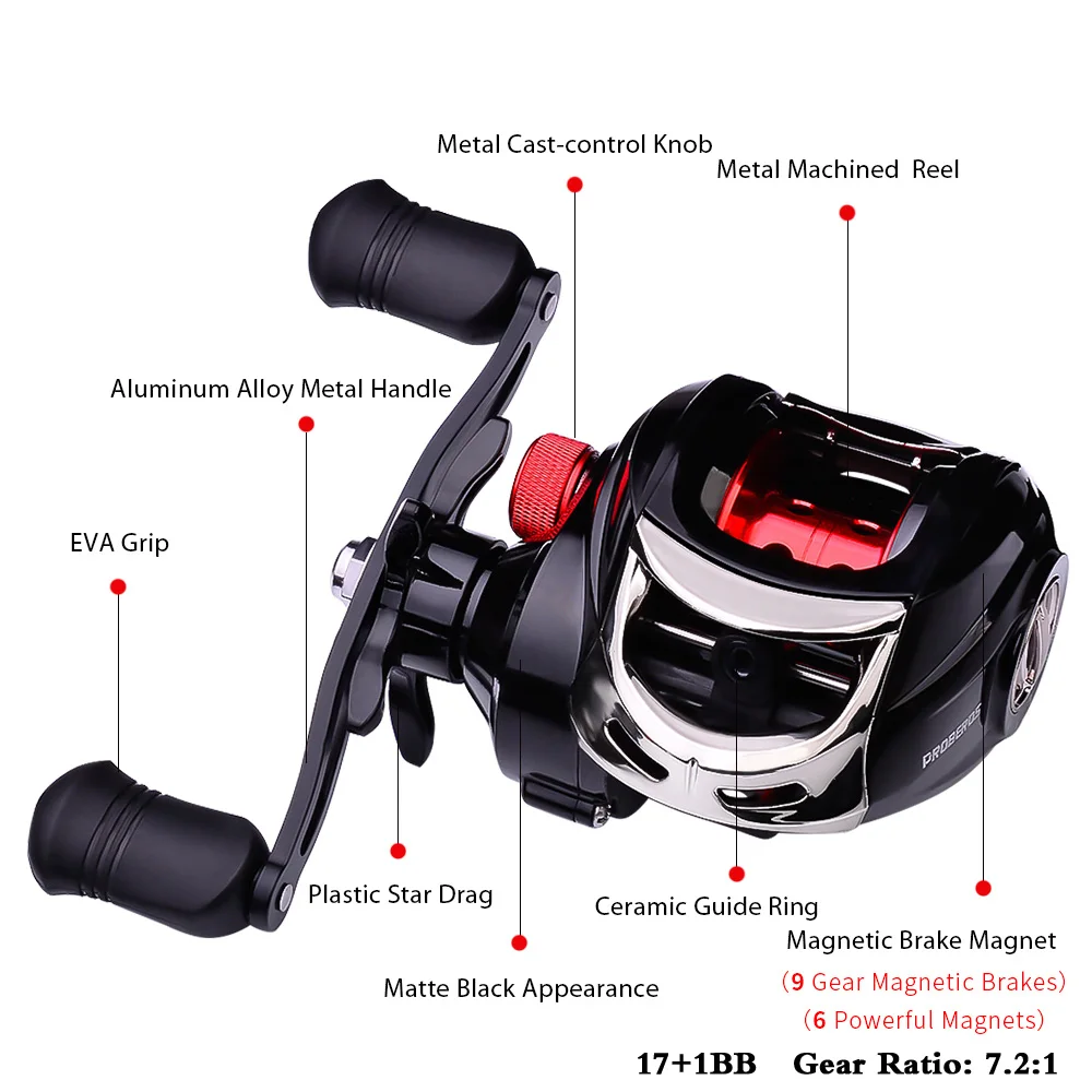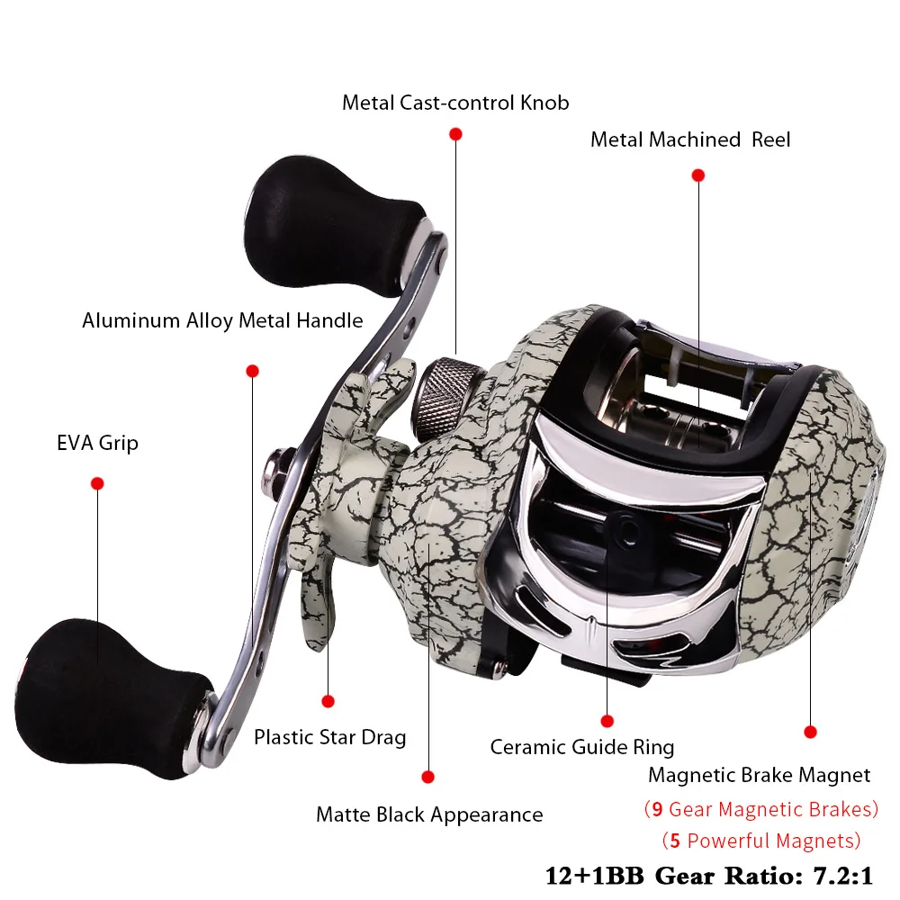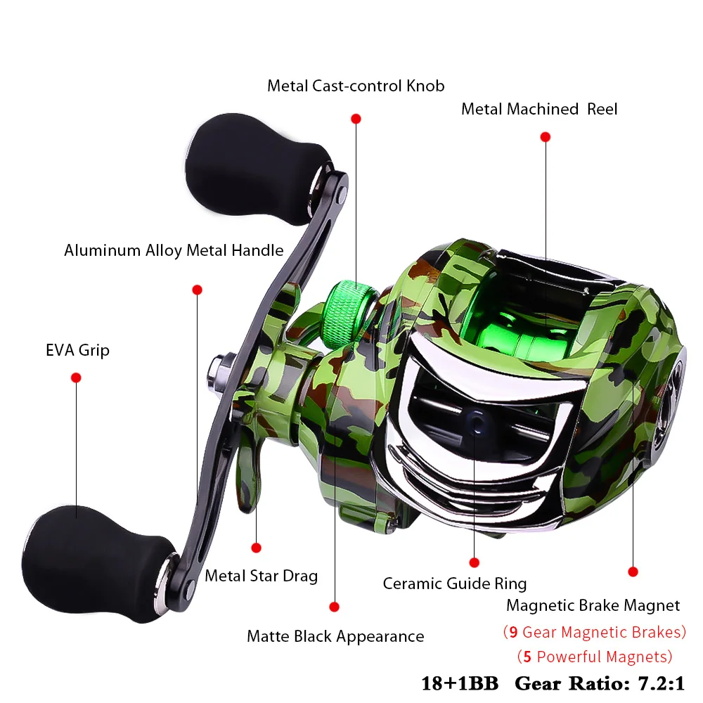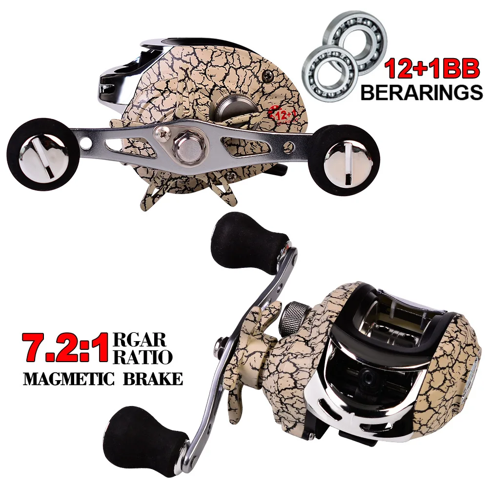 Carrete de Baitcast de pesca, freno magnético de carbono de alta velocidad, arrastre máximo, rueda de Baitcasting, aparejos de pesca de agua salada, 7,2: 1/7.1:1