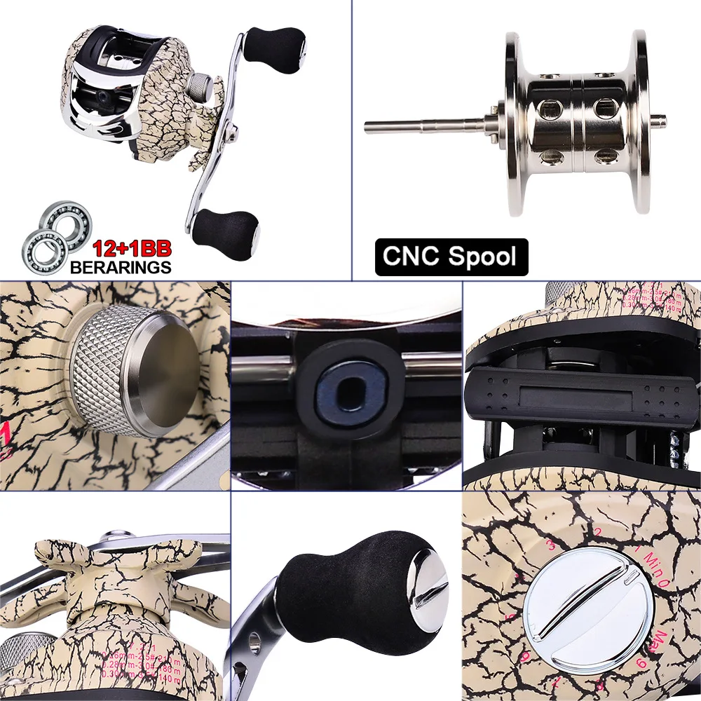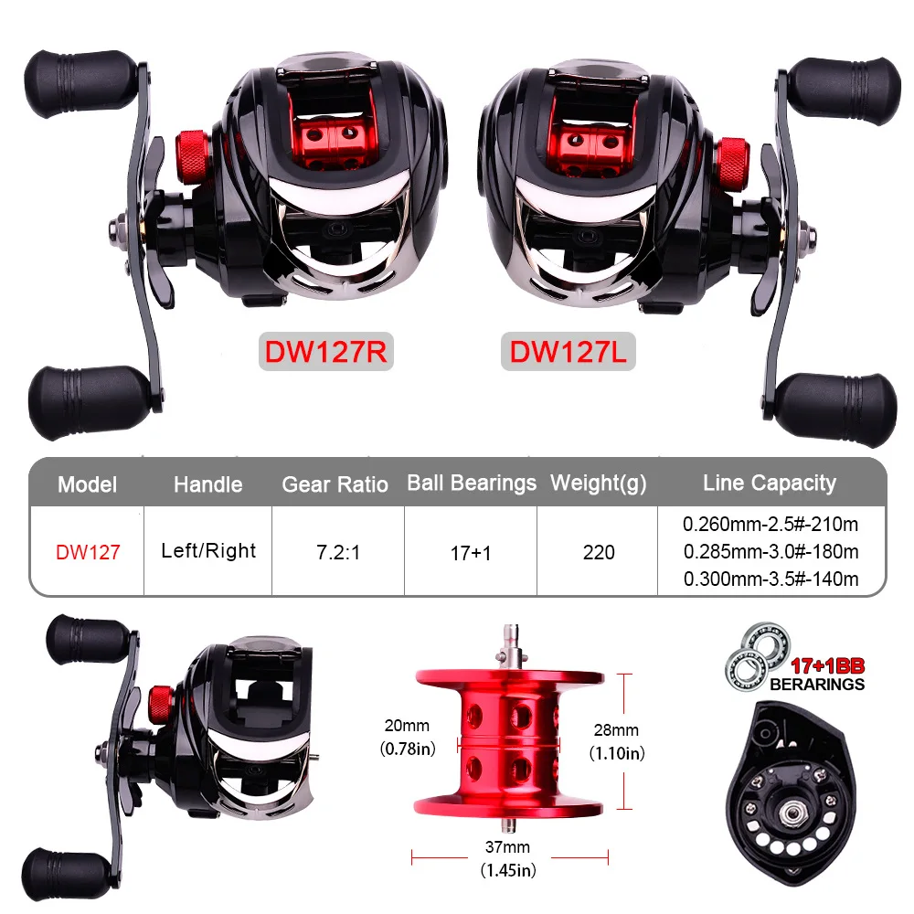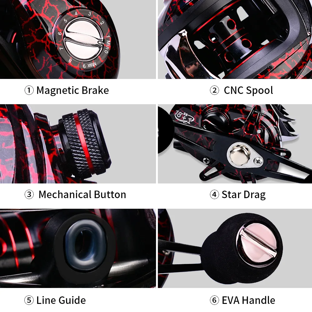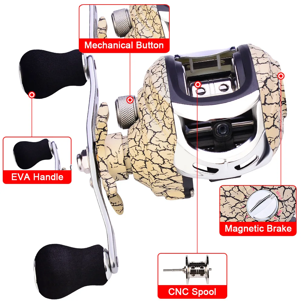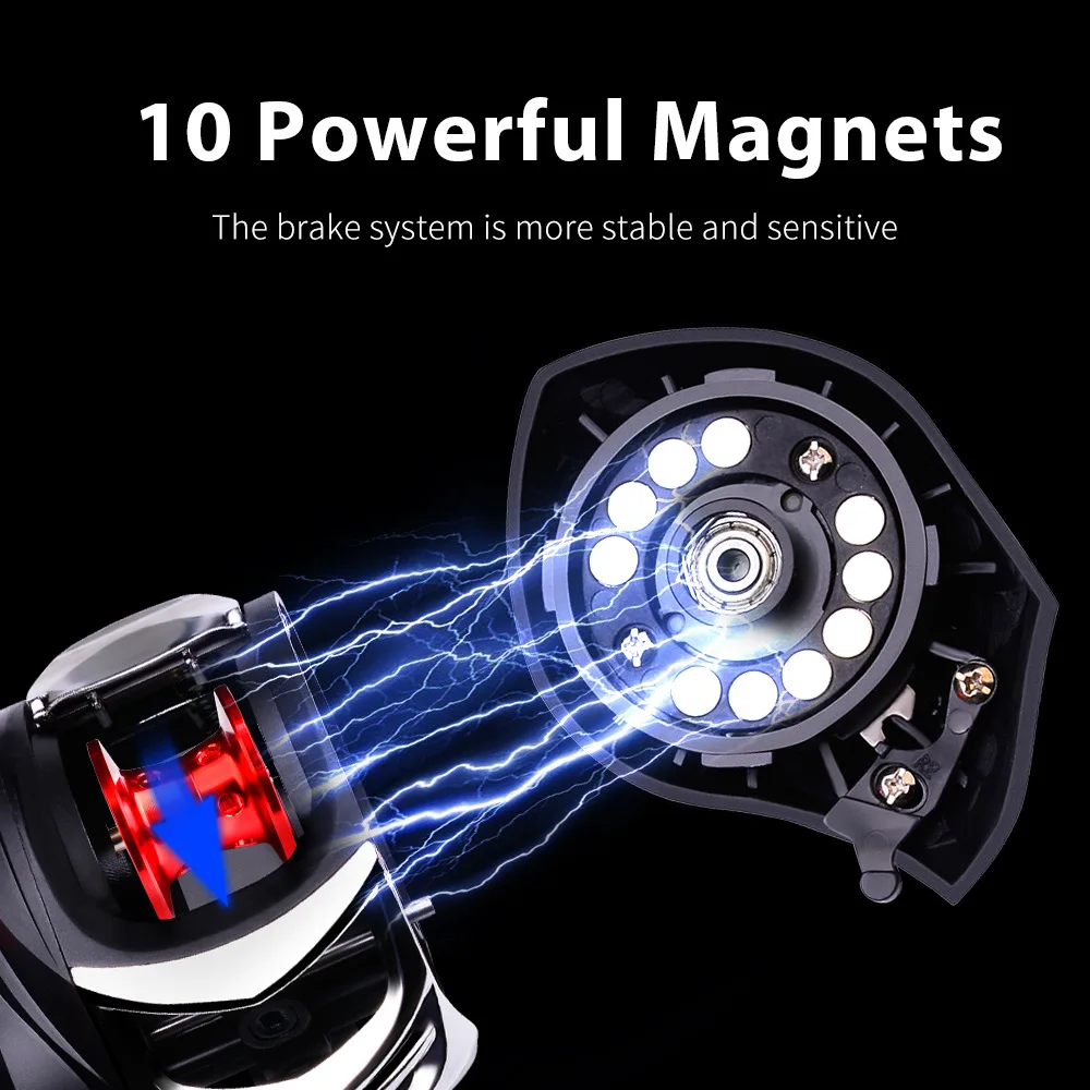 Carrete de Baitcast de pesca, freno magnético de carbono de alta velocidad, arrastre máximo, rueda de Baitcasting, aparejos de pesca de agua salada, 7,2: 1/7.1:1