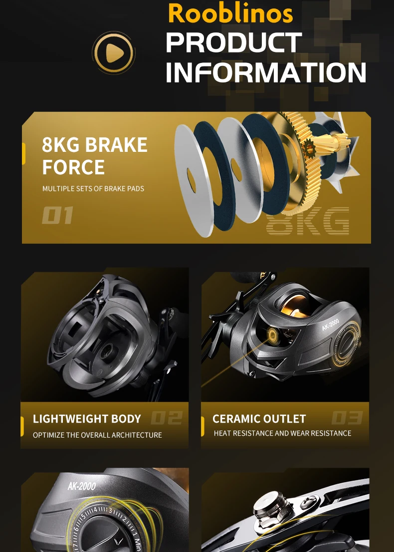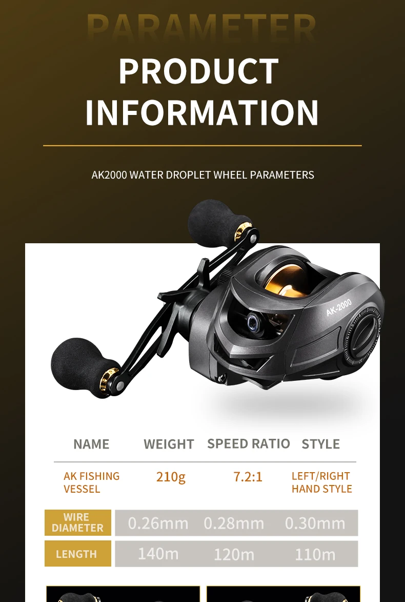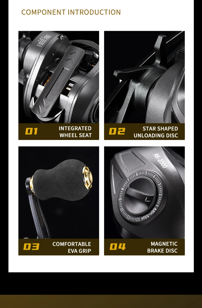Carrete de Baitcasting AK carrete de Baitcasting Betriel 9,5 KG relación de engranaje de arrastre máximo carrete de pesca carretes Baitcaster