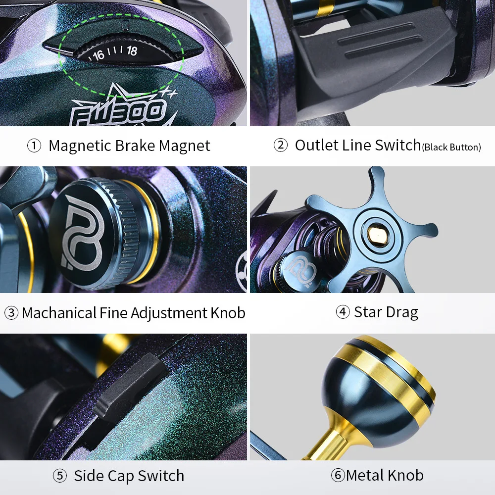 Carrete Baitcasting cuerpo de Metal 15KG arrastre máximo 5 + 1 rodamientos marco de aluminio carrete de pesca de agua dulce y salada