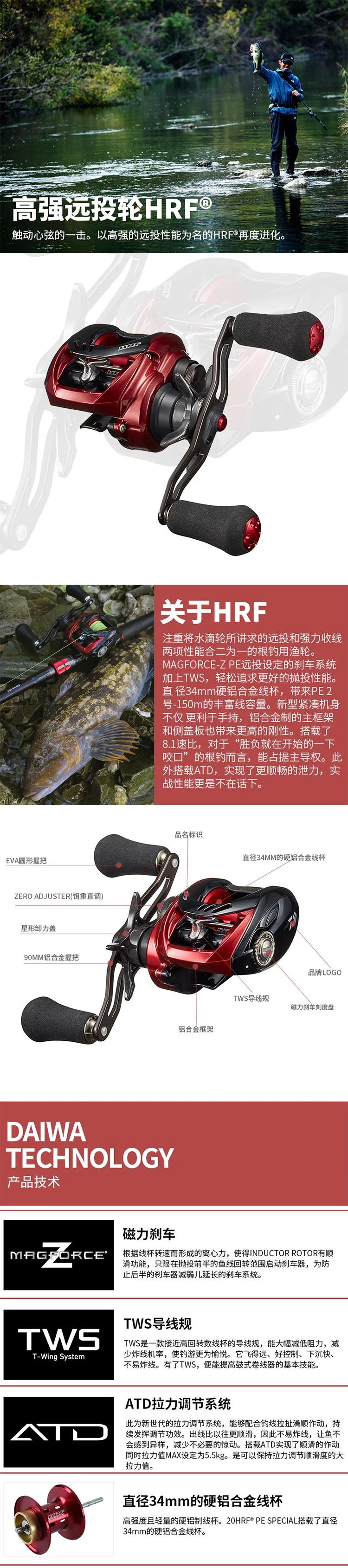 Carrete de Baitcasting especial DAIWA HRF PE Original, perfil de relación 8,1: 1, carretes de pesca en raíz y orilla, carrete de fundición larga