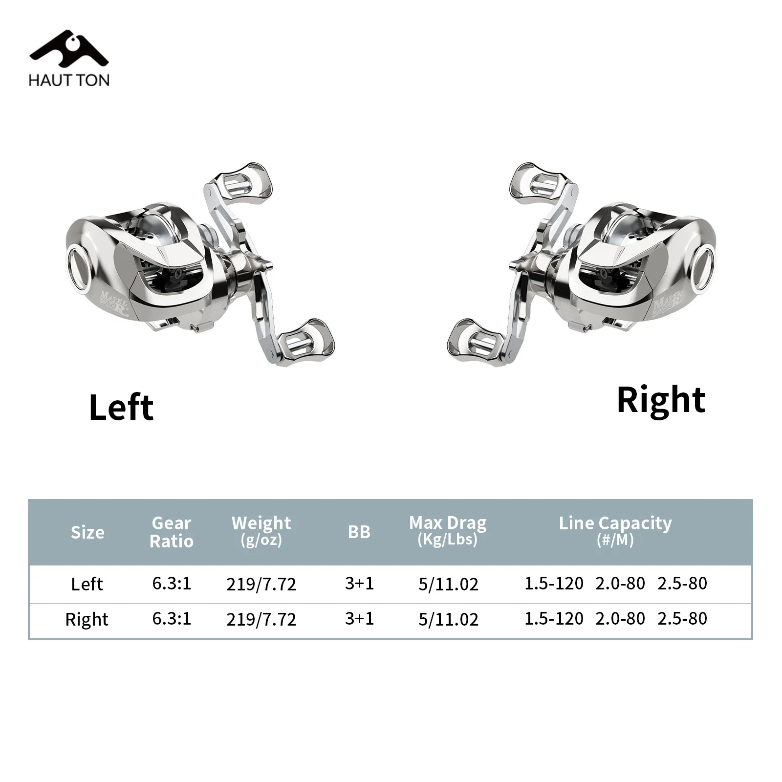 Carrete de Baitcasting plateado ligero, arrastre máximo de 5KG, relación de engranaje 6,3: 1, 3 + 1BB, carrete de Metal, rodamientos y brazo basculante para pesca en agua dulce