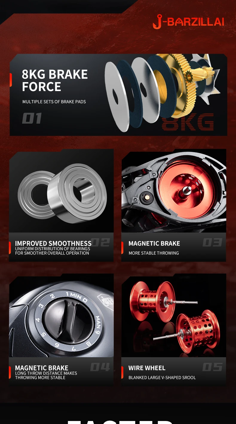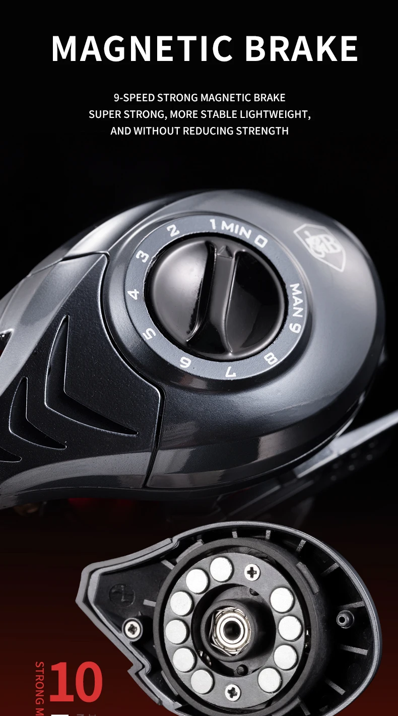 Para el primer uso, ajuste la fuerza de frenado al máximo para evitar el juego del hilo de pescar. Luego ajuste gradualmente el nivel de acuerdo con el peso del cebo para lograr la distancia de lanzamiento más lejana.