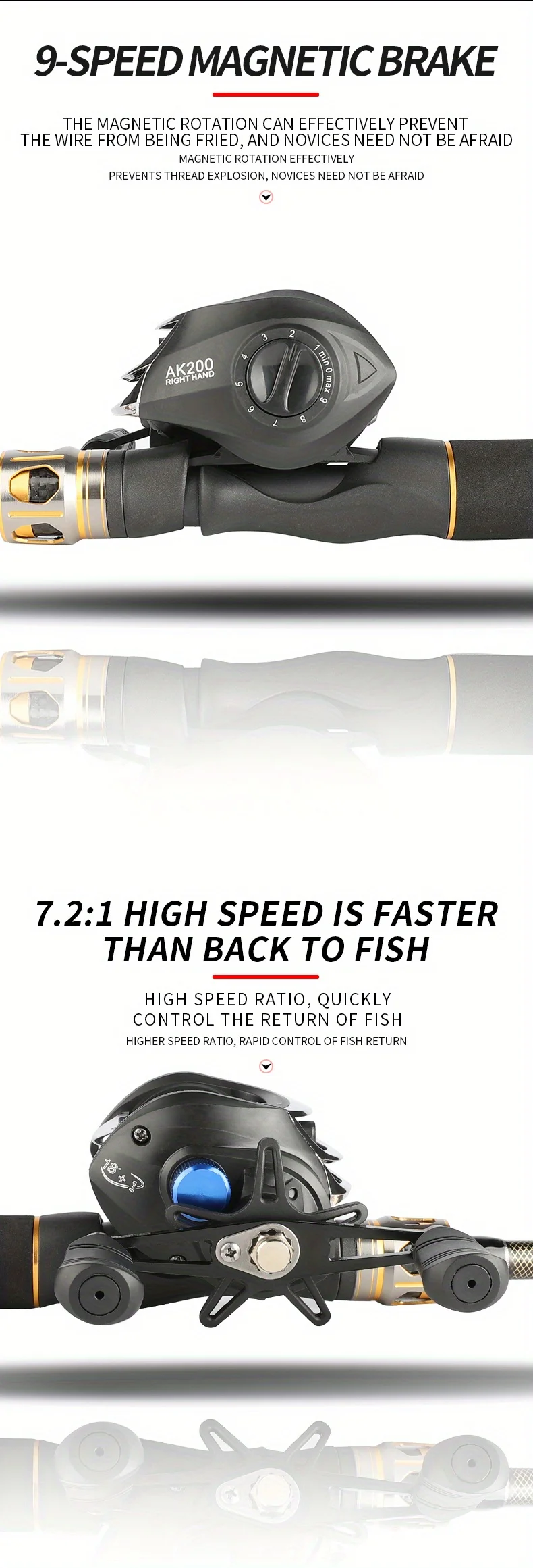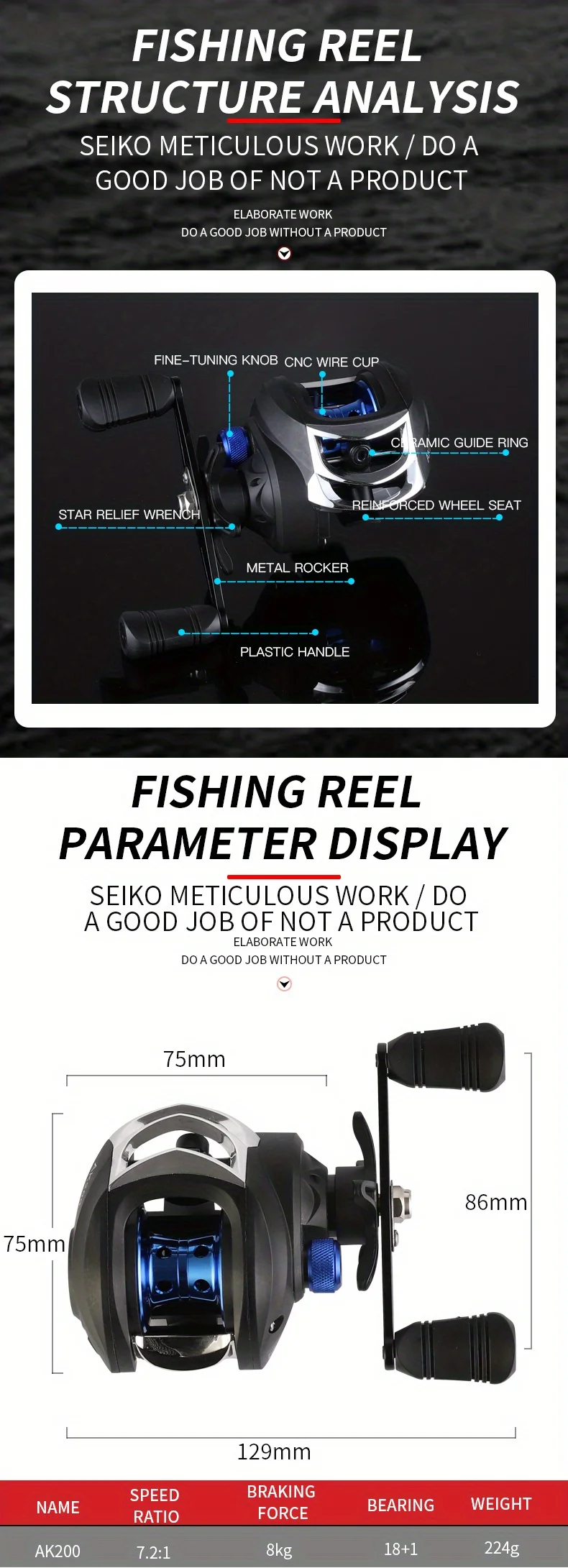 Carrete de Baitcasting Serie AK 2024 GLS, relación de transmisión 7,2: 1, 18 + 1BB, arrastre máximo de 8KG, carrete poco profundo, carrete de Baitcasting, para agua dulce y salada
