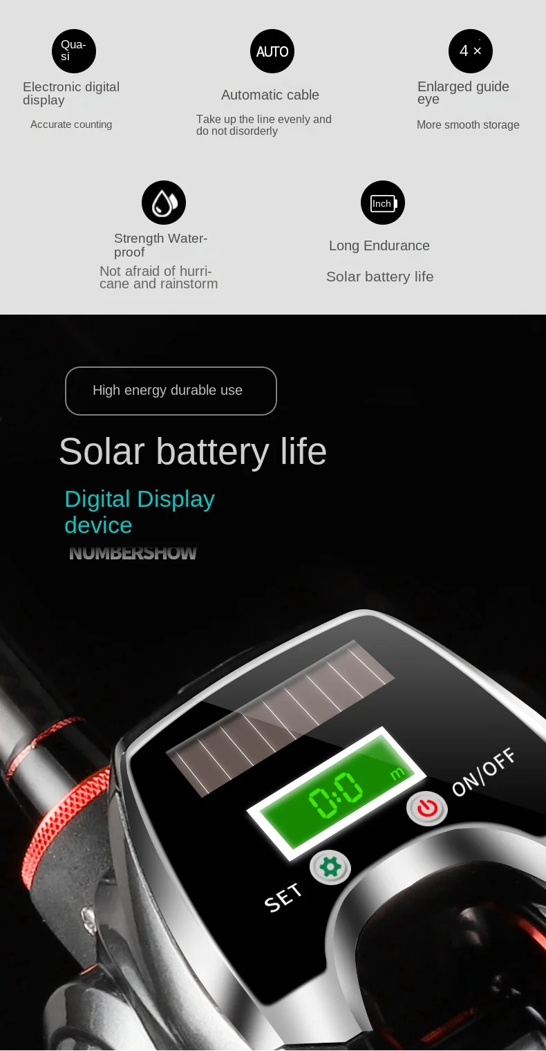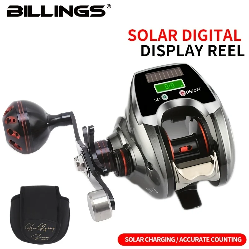 Carrete de Baitcasting serie BILLINGS S200, relación de transmisión 8,0: 1, carga USB, carga Solar, pantalla Digital, arrastre máximo de 22lb, para agua dulce