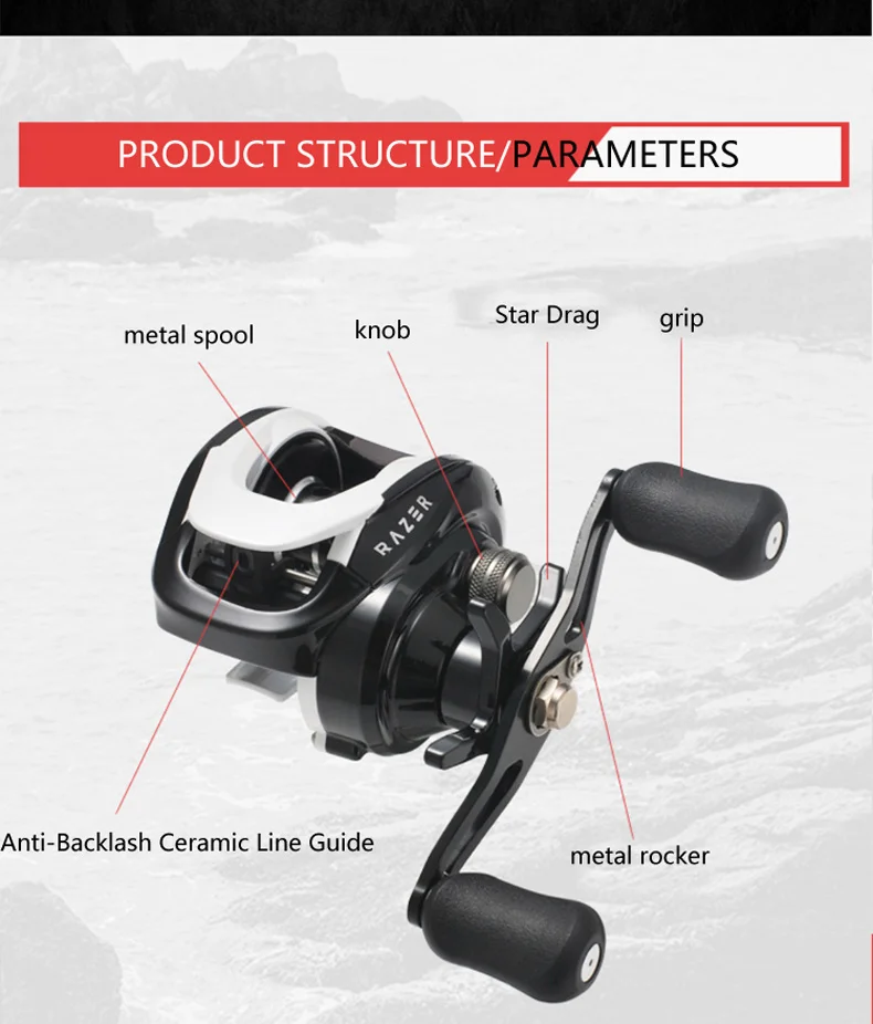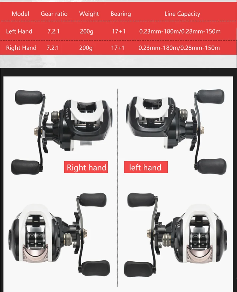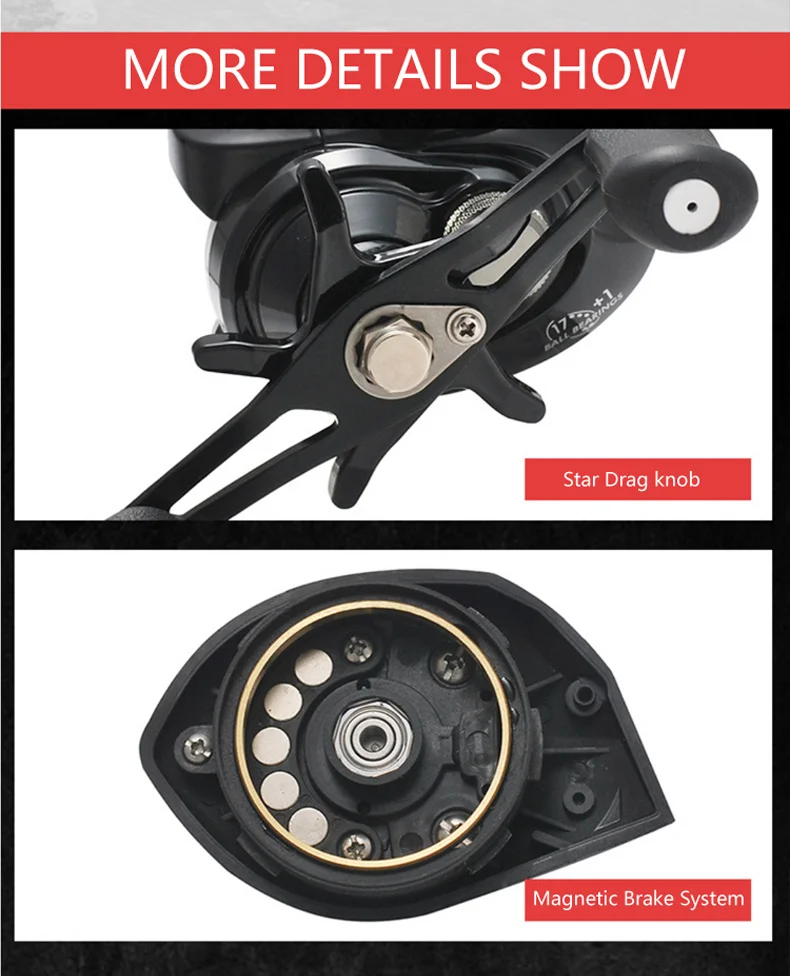 Carrete de Baitcasting con sistema de freno magnético 7,2: 1, carrete de pesca de alta velocidad 17 + 1BB, accesorios de pesca, rueda de pesca de Metal