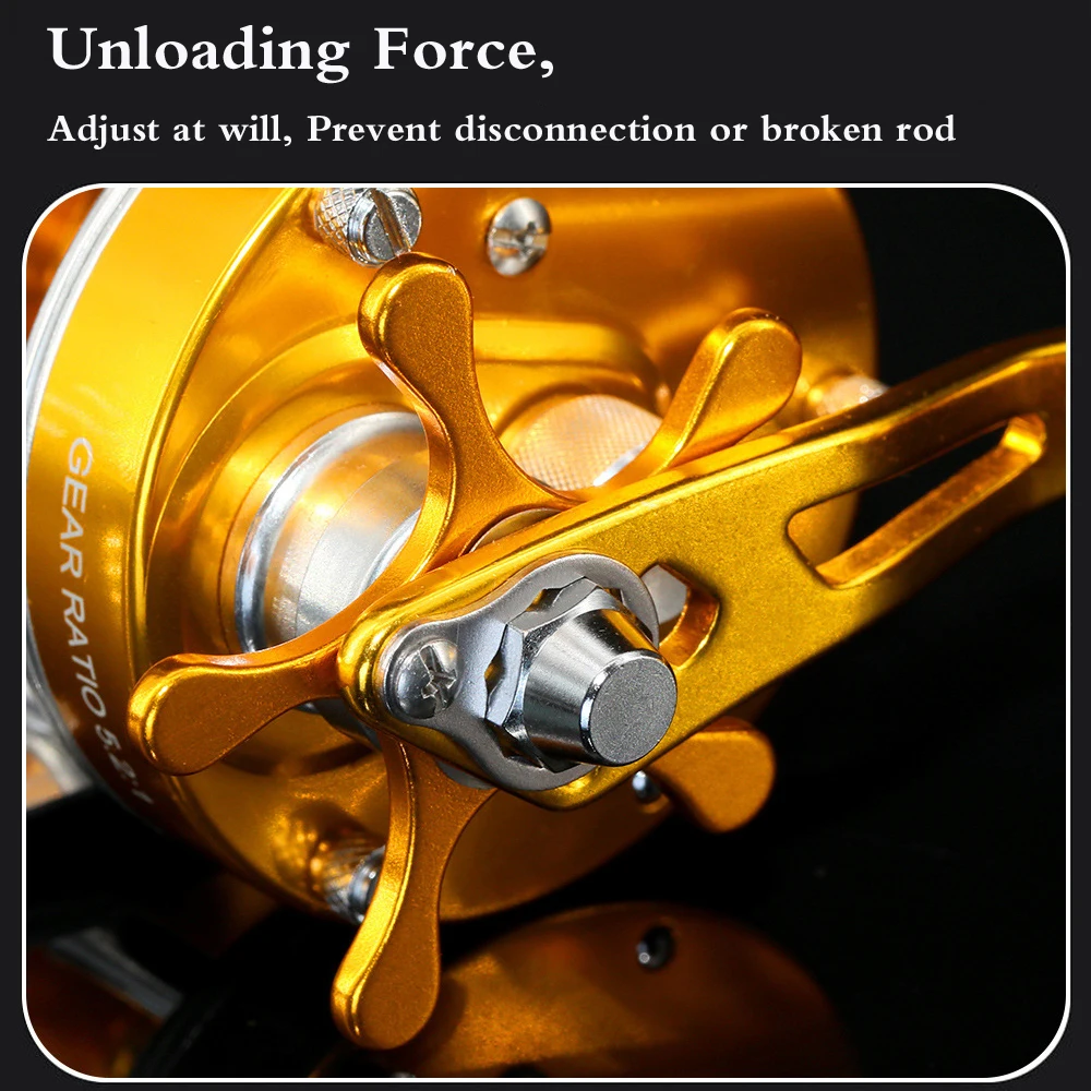 Carrete de Baitcasting de tambor CNC, totalmente metálico, alta velocidad 5,2: 1/4, 2:1, bote de Jigging fundido, rueda de pesca de mar, arrastre máximo de 15kg, agua salada