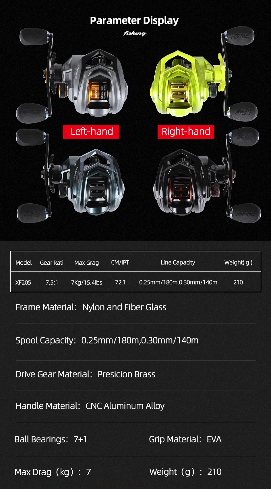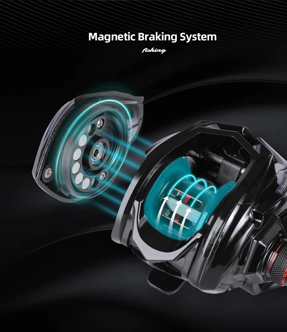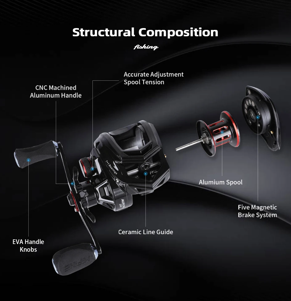 MIFINE LAVA/LOUVRE Series Pesca Baitcasting Carrete Cross-Fire 5 Sistema de frenado magnético Perfil bajo Mano izquierda 6,8: 1 Relación de engranaje