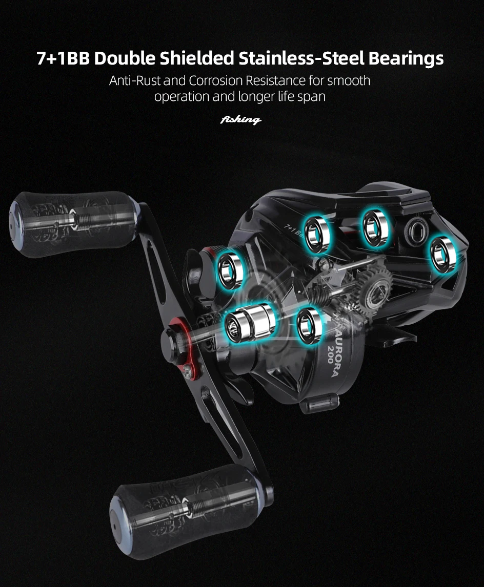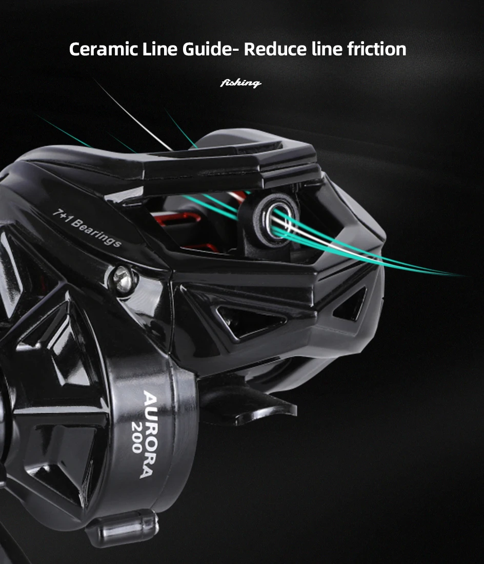 7 rodamientos: La resistencia a la corrosión 7 + 1 rodamientos de bolas de acero inoxidable lo convierten en un carrete de cebo suave y duradero.