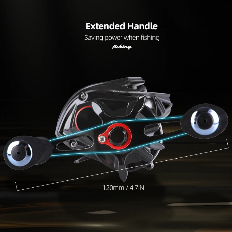 Diseño ultraligero: el cuerpo del carrete de pesca está hecho de nylon y fibra de vidrio, lo que no solo es muy resistente, sino que también reduce el peso total del carrete, por lo que es solo 210g.