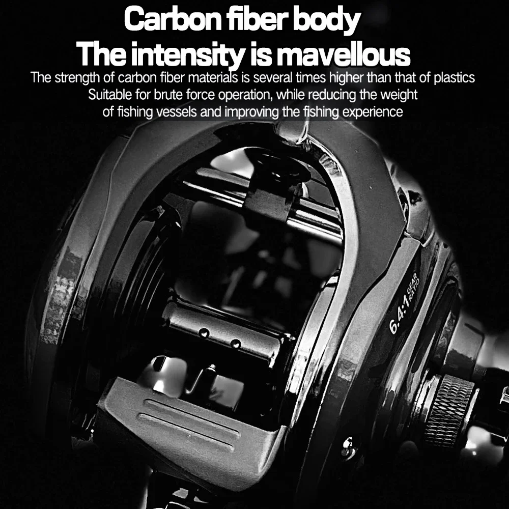 El material de carbono es más duradero, más resistente a altas temperaturas y más liviano que el plástico industrial, lo que produce una potente potencia de arrastre y le ayuda a aliviar el estrés al lanzar la pesca.