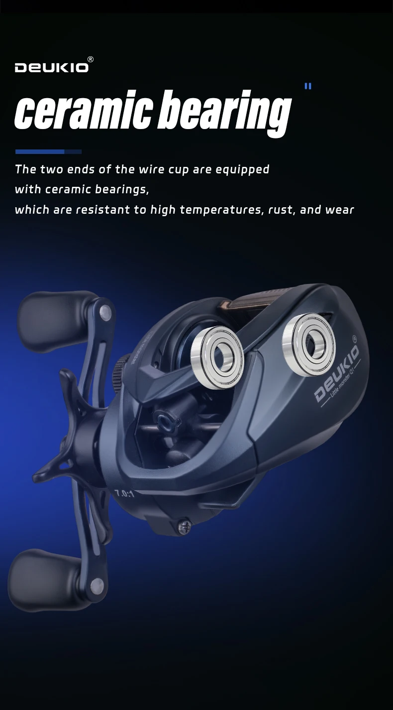 Carrete de Baitcasting ultraligero, sistema de frenado magnético, relación de engranaje 7,0,1, carrete de aluminio, bobina de pesca con rodamiento cerámico de doble arrastre de 6KG