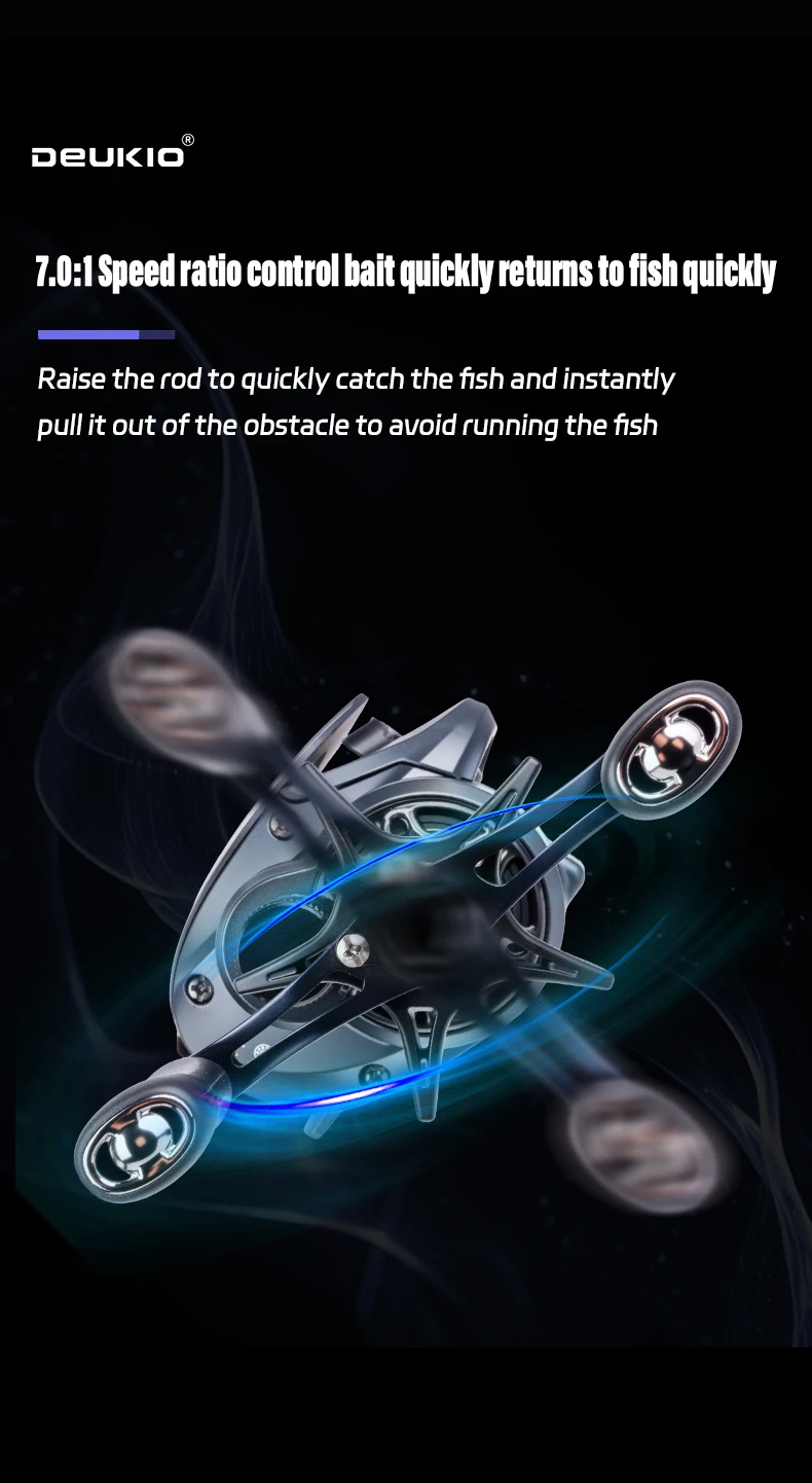 La relación de velocidad 2.7:0:1 controla el cebo rápidamente, devuelve a los peces rápidamente, levanta la caña para pescar rápidamente y arrastra instantáneamente a los peces sin obstáculos para evitar que corran.