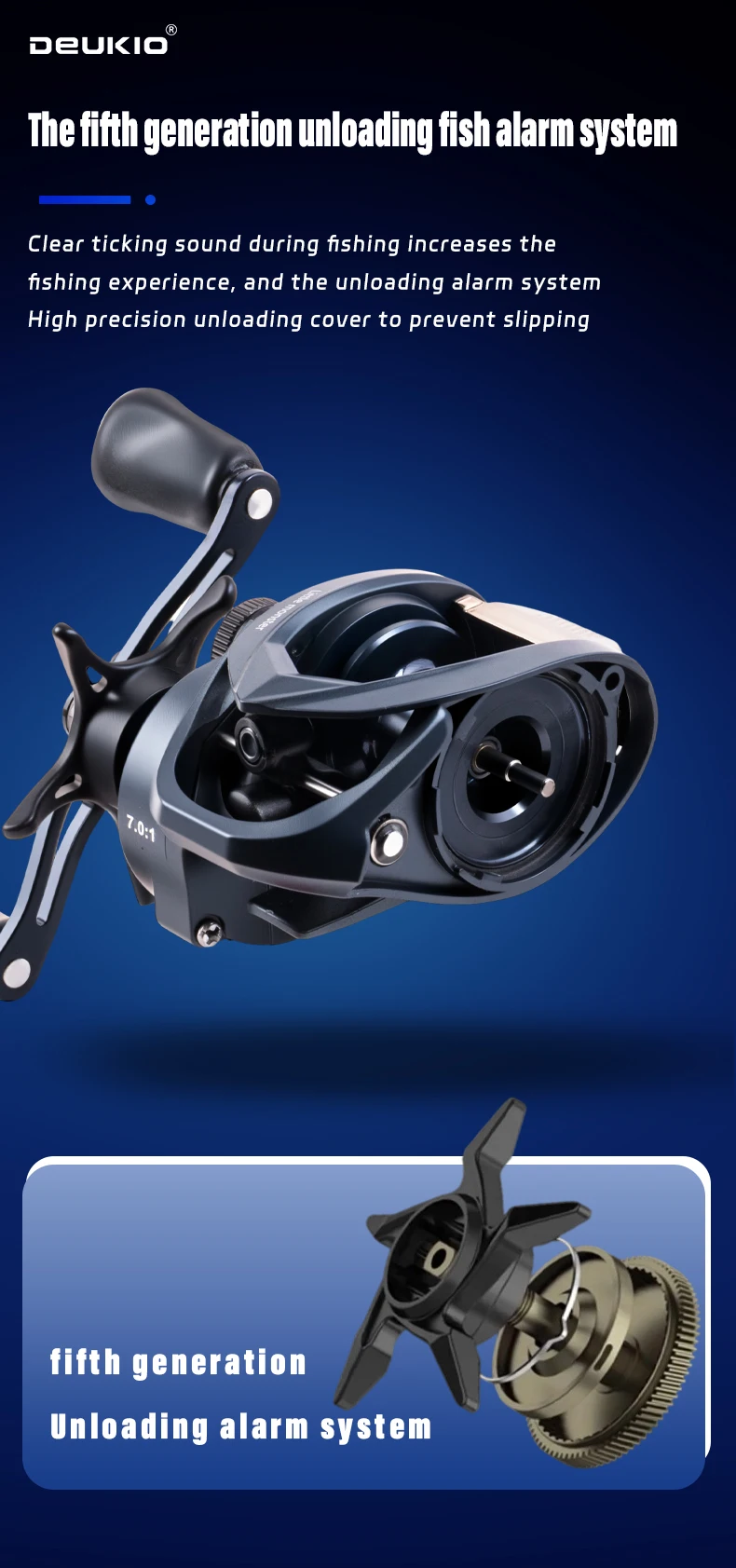 1.Sistema de alarma de descarga de peces, que emite un sonido nítido durante la pesca para mejorar la experiencia de pesca.El sonido de lanzamiento único aumenta la experiencia de lanzamiento y la cubierta de descarga de alta precisión evita resbalones.