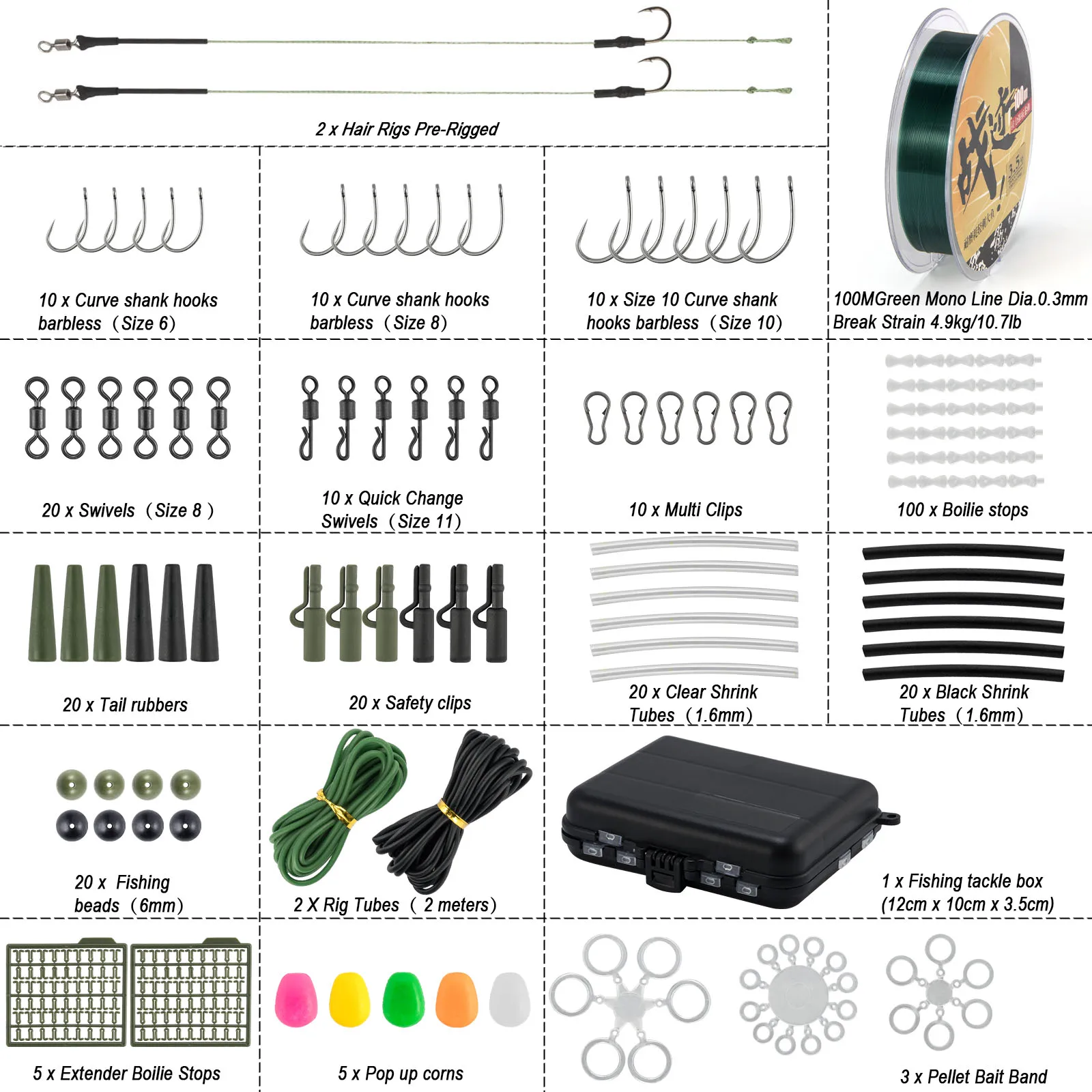 [Adecuado para carpa]: además de la varilla y el carrete, también proporcionamos un juego completo de accesorios para carpa. Incluye Boilie Stop, aparejos para el cabello, goma trasera, clips de seguridad, banda de cebo para tubo de aparejo y mucho más. Ideal para rastrear carpas a lo largo de bancos de malezas y hará frente a carpas de tamaño pequeño a mediano.