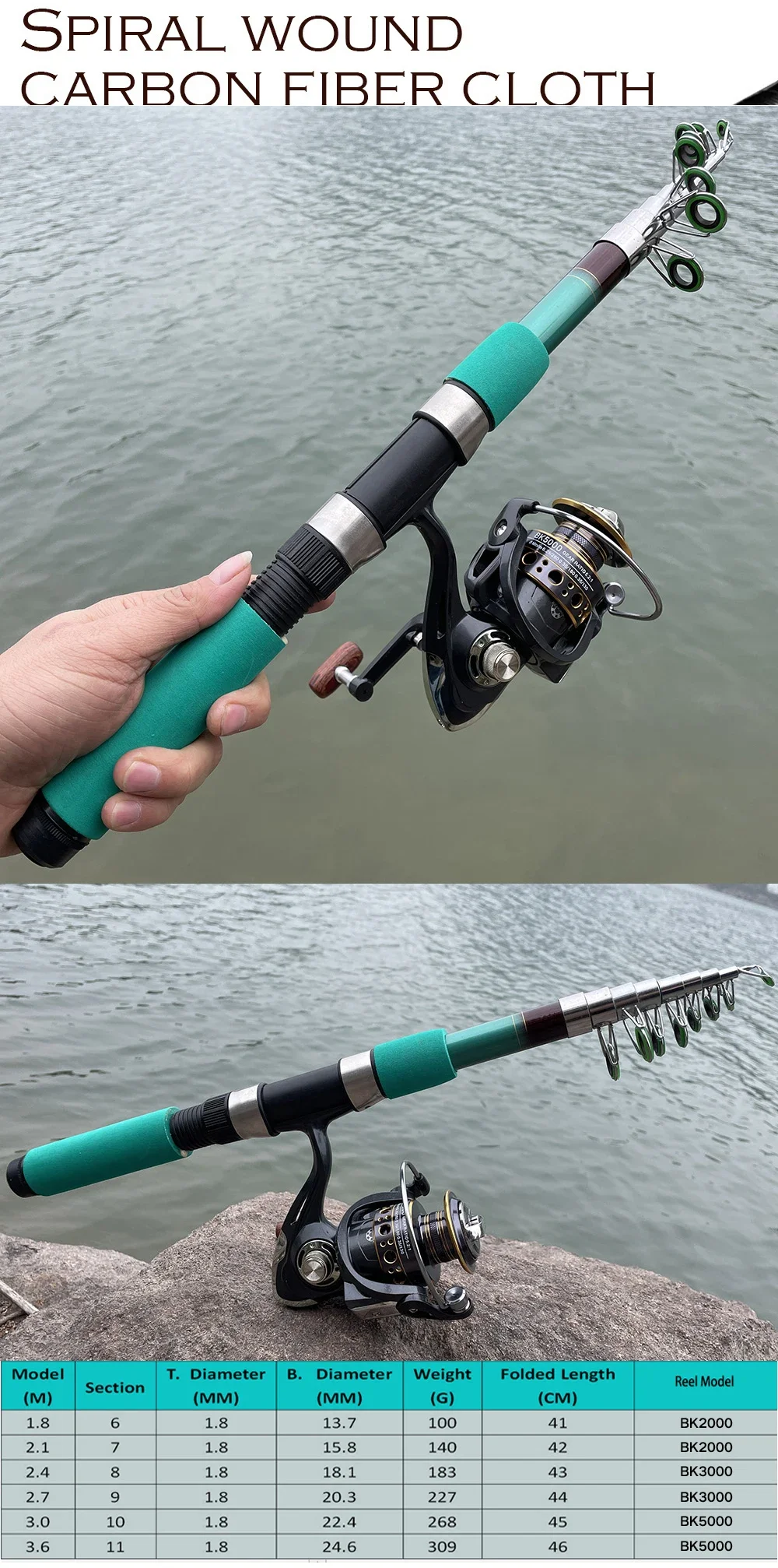 1. Esta caña de pescar está hecha de fibra de carbono, resistente y duradera.