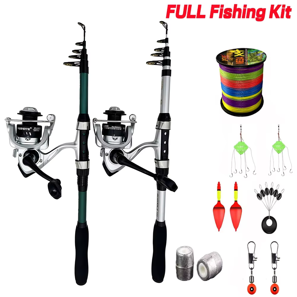 Carrete de caña de pescar de mar Combo1.8m caña telescópica 2000 carrete giratorio 5,2: 1 relación de engranaje con línea espacio frijol flotador Pesca Combo Pesca
