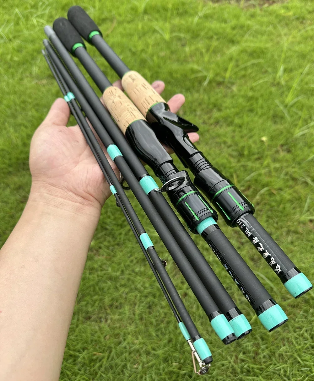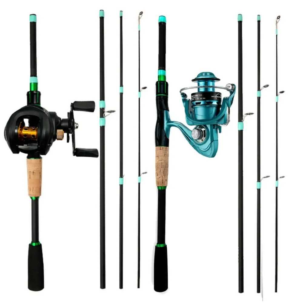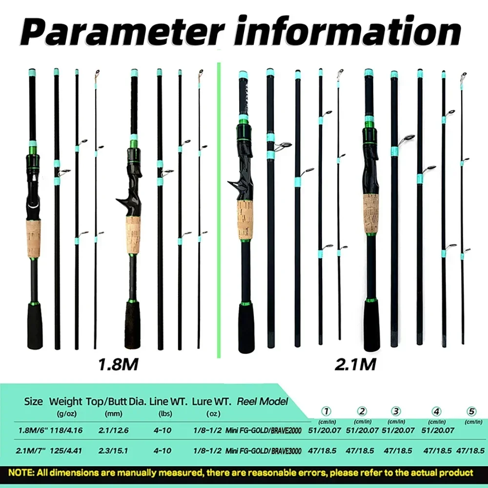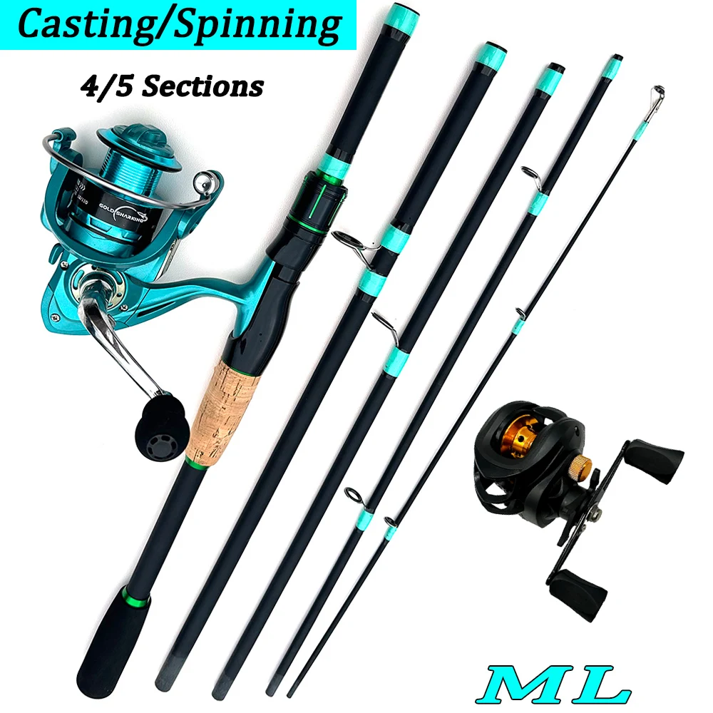 Combo de carrete de caña de pescar con señuelo de potencia de 1,8 m/2,1 m ML, fundición de sección 4/5/caña de carbono giratoria, juego de pesca de carrete de fundición de mano izquierda/derecha