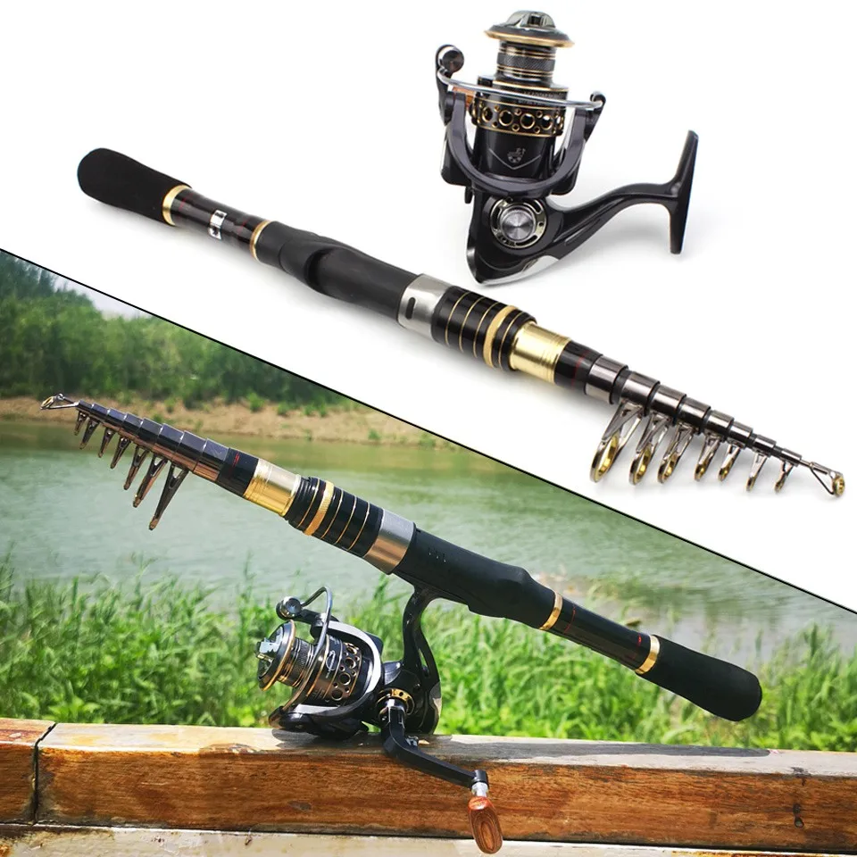 Carrete de caña de pescar telescópico de carbono, conjunto multifunción para principiantes, 1,8 m-3,3 m, novedad