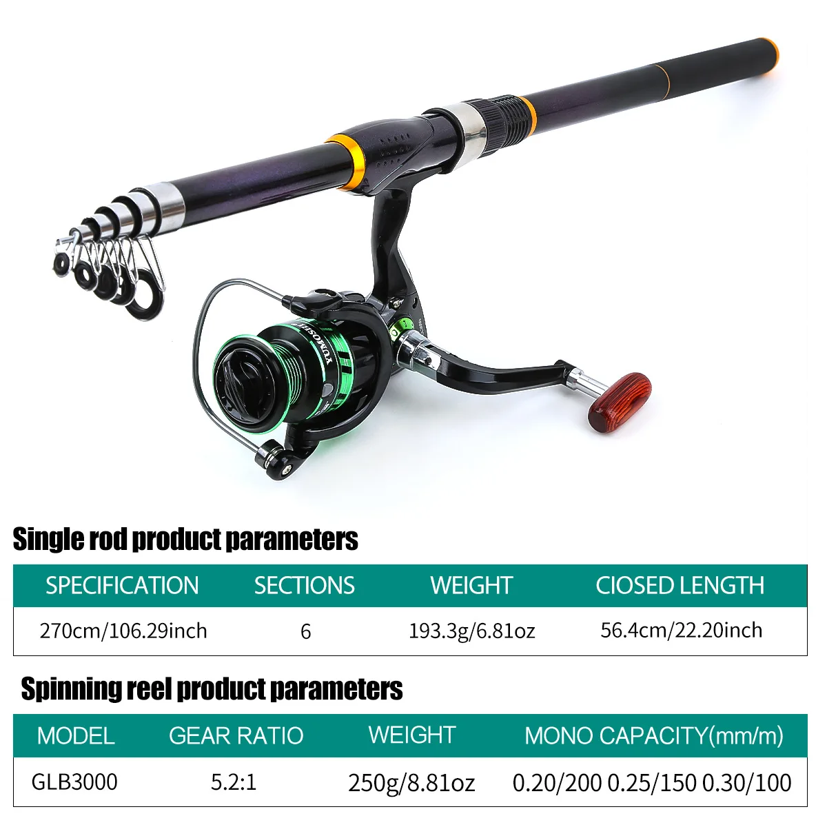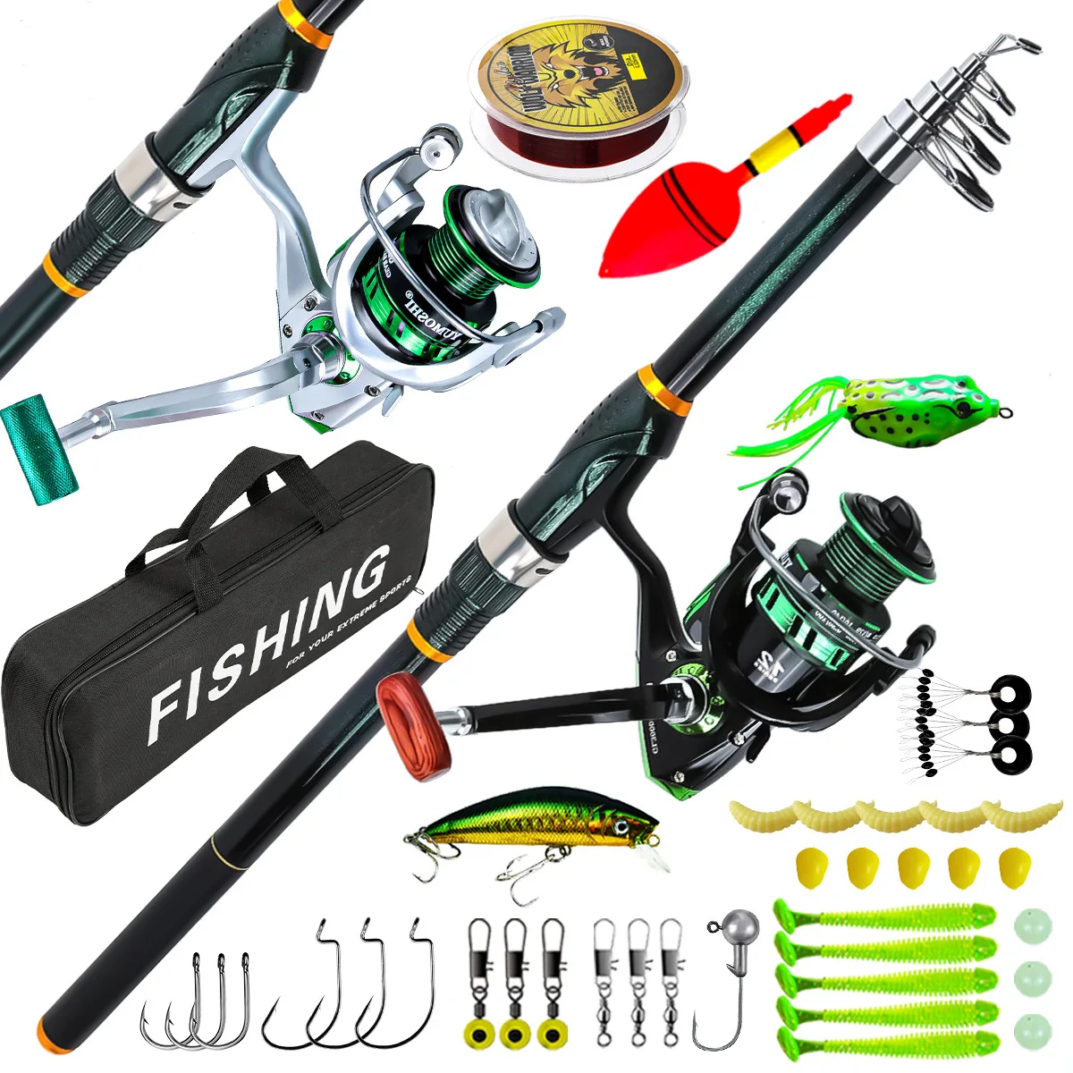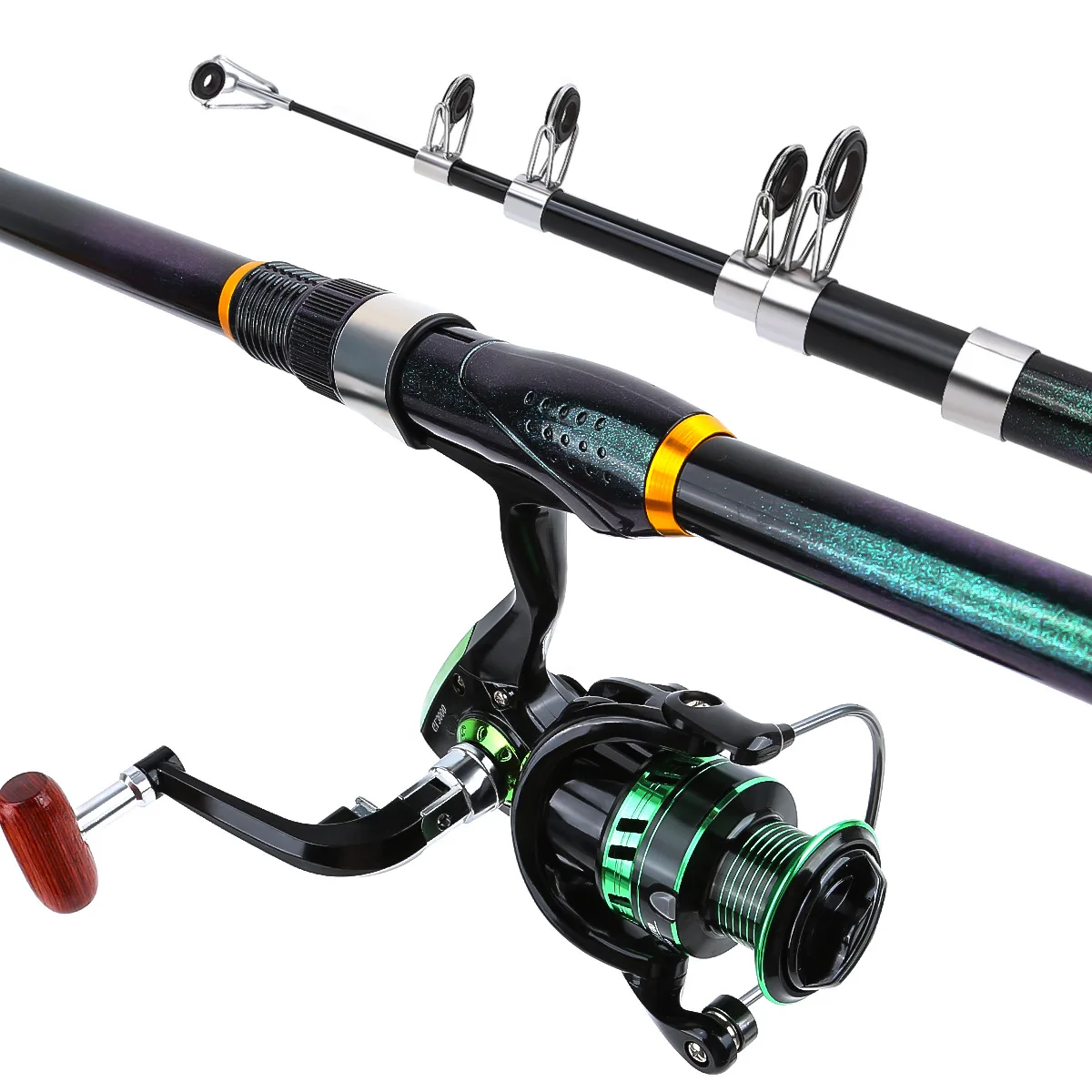 Carrete de caña de pescar verde de carbono de 2,7 M Combo telescópico giratorio viaje agua salada equipo de pesca de agua dulce