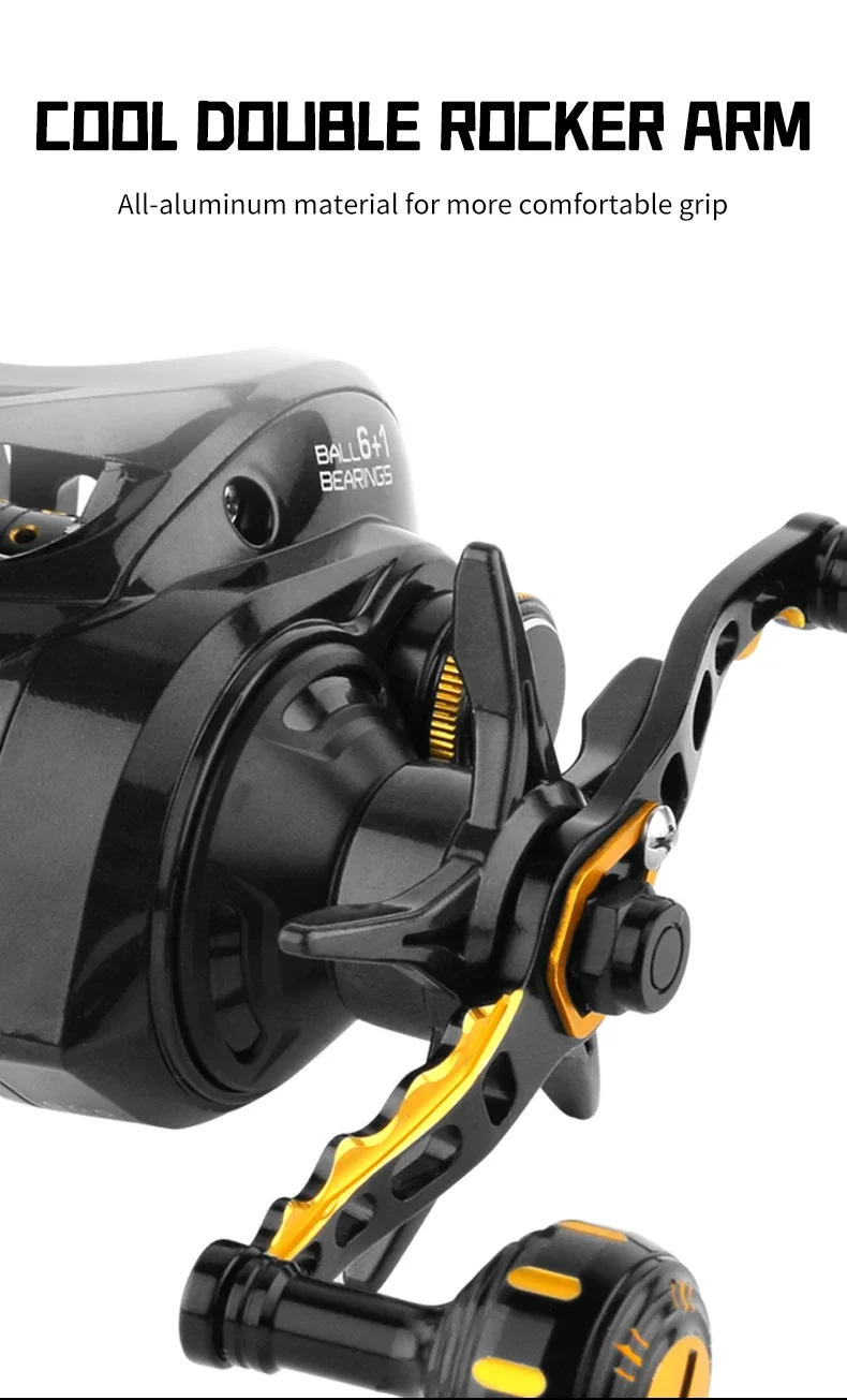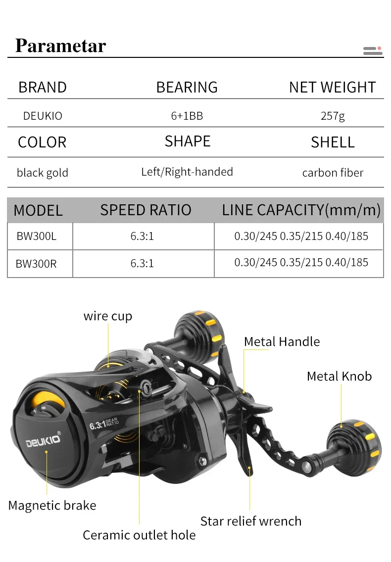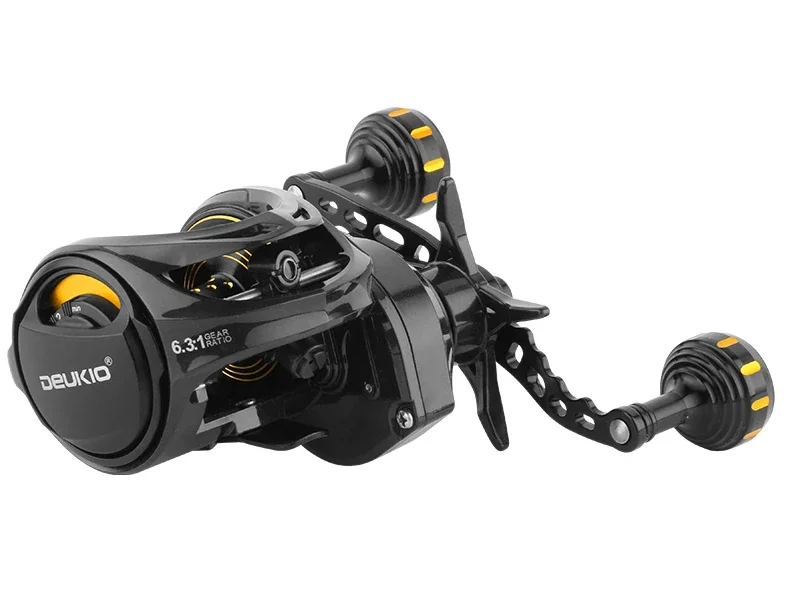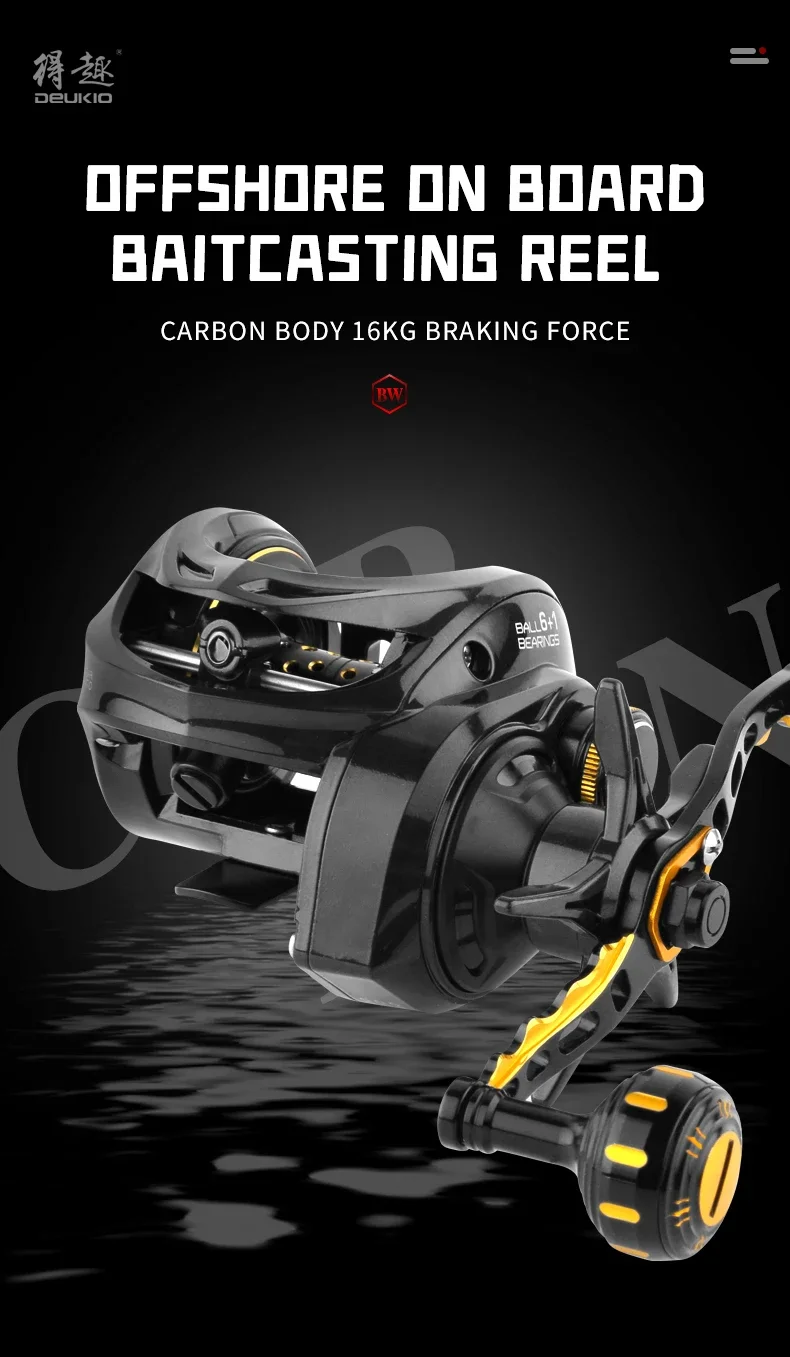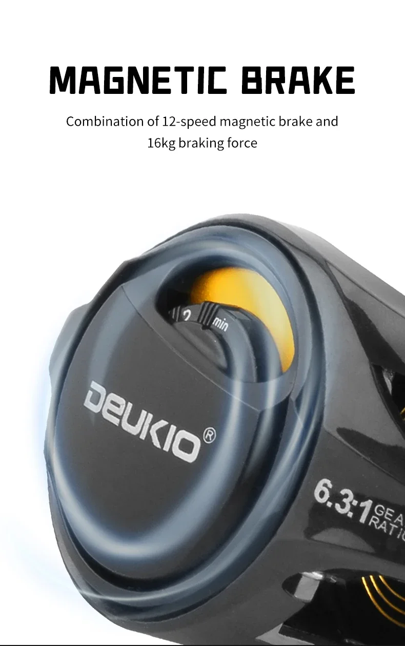 Carrete DEUKIO de carcasa de carbono para Baitcasting, sistema de freno doble, arrastre máximo de 16KG, 6 + 1 BBs, 6,3: 1, carretes de pesca de carpa de agua salada de alta velocidad