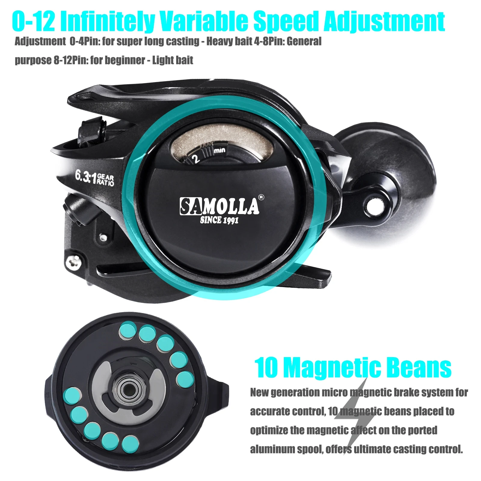 5. Ergonómico e innovador: El carrete de cebo Samolla TC350LP viene con un botón de enganche de barra de pulgar de fácil acceso en la placa lateral del engranaje que le ayuda a retroceder la barra de pulgar sin girar el mango. El carrete de envoltura de línea súper resistente elimina el uso de mono como respaldo. El sistema de guía de línea de soporte de ejes dobles aumenta en gran medida la estabilidad y la durabilidad. 10 sistema efectivo de frenado magnético evita los excesos y el contragolpe. Almohadilla de barra de pulgar envuelta en el interior