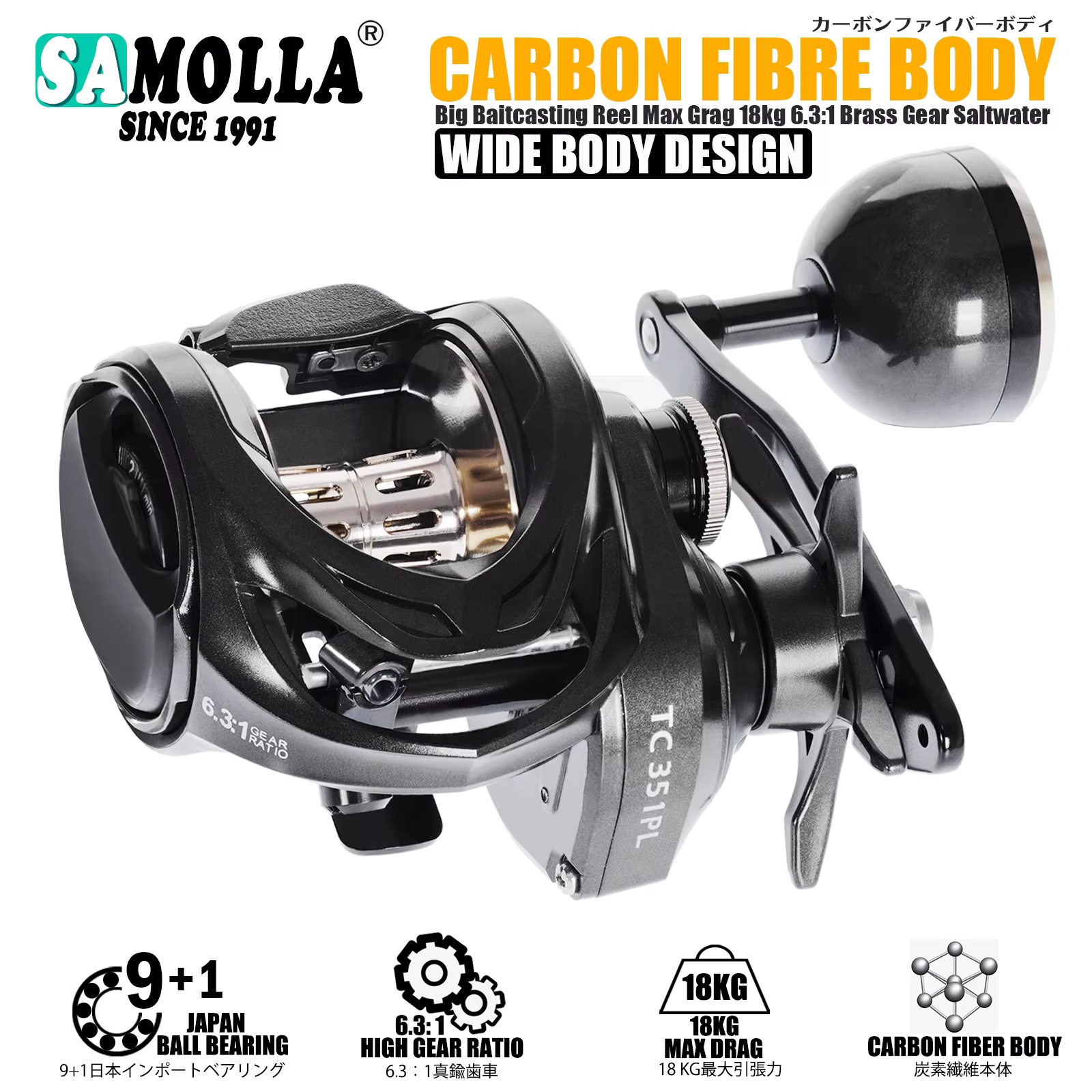 1. Duradero-El carrete de baitcasting Samolla TC350LP diseñado con marco de aluminio premium y placa lateral de engranaje que proporciona una durabilidad increíble para manejar los peces de agua dulce y salada más grandes.