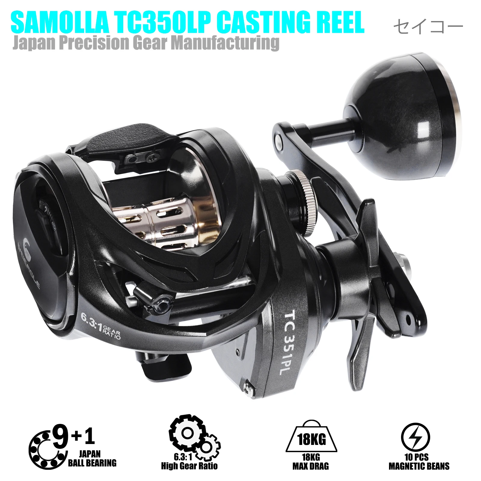 4. Múltiples opciones: los carretes de cebo TC350LP vienen con opciones de relación de transmisión 6,3: 1 con diferentes características recubiertas de color que lo convierten en un carrete de pesca de adaptación múltiple. También puede seleccionar un mango doble ordinario o un mango fuerte de acuerdo con sus preferencias personales.