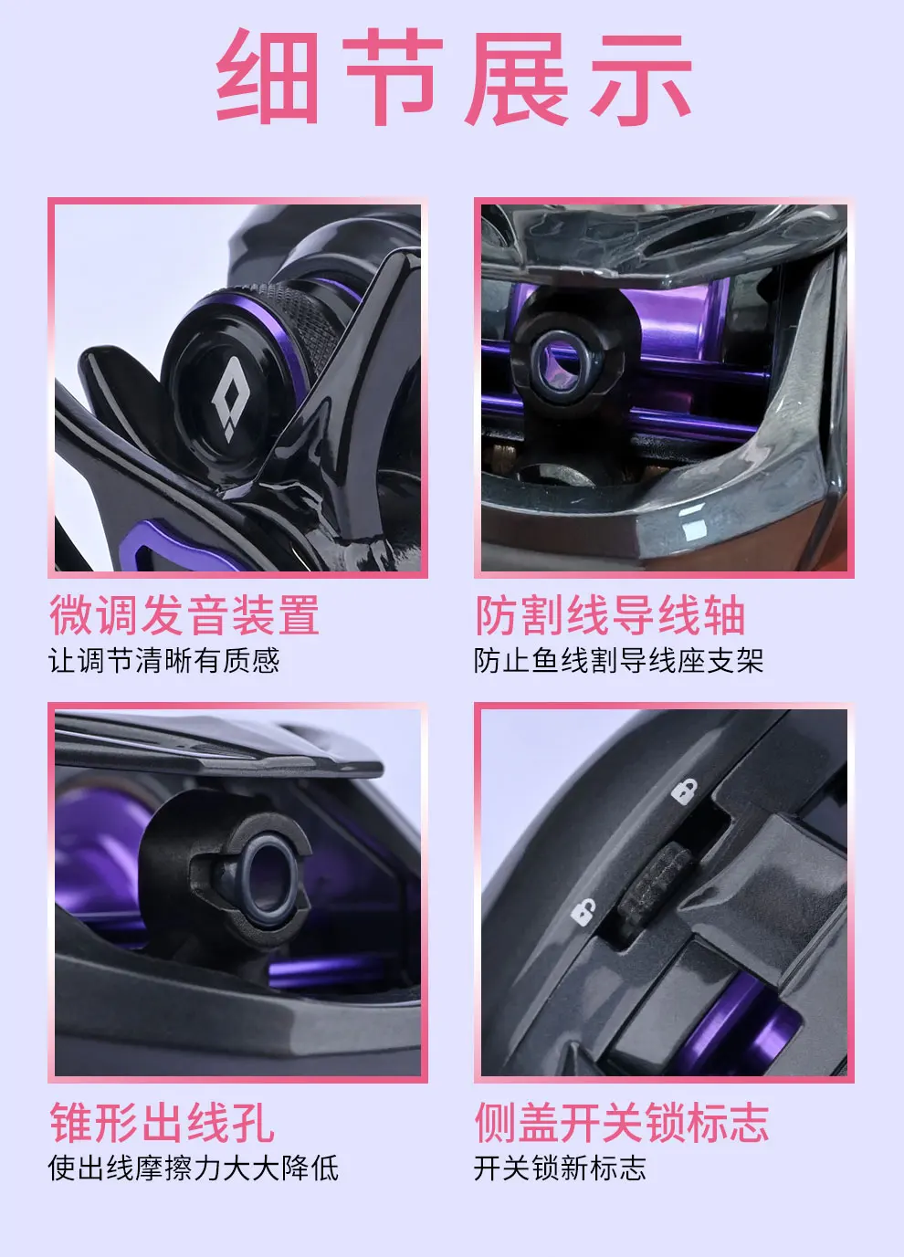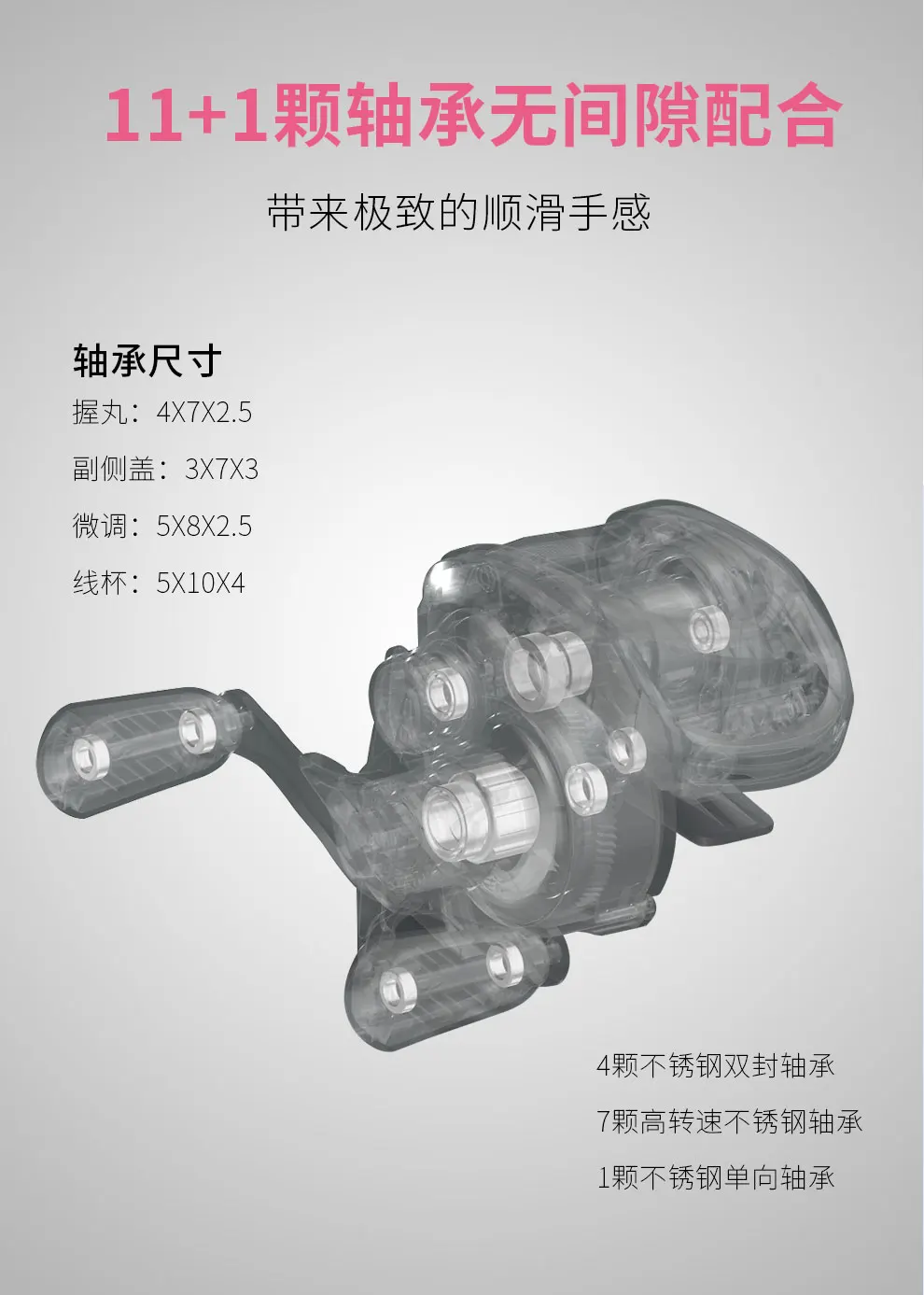 Modo silencioso de pesca nocturna: sin luz Apaga las luces, reduce el ruido electrónico y aumenta la fuerza de frenado al final del lanzamiento, eliminando la necesidad de sujetar el carrete mientras está en el agua.El modo silencioso de pesca nocturna es silencioso.