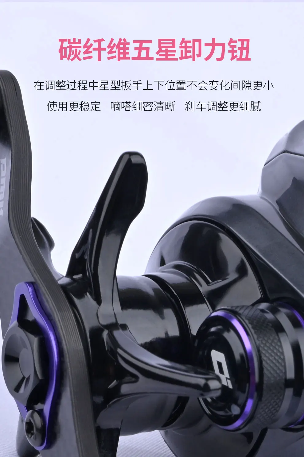 1.Ajuste de freno MIIEC: ajuste la fuerza de freno ajustando el tamaño del icono indicador en el costado del carrete.Girar la perilla del freno permite un ajuste infinito para satisfacer sus necesidades.Este ajuste de freno infinitamente preciso proporciona una capacidad de respuesta excepcional.