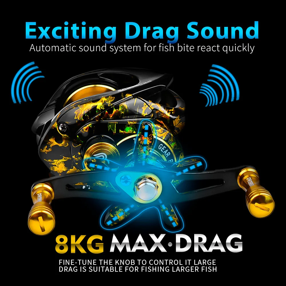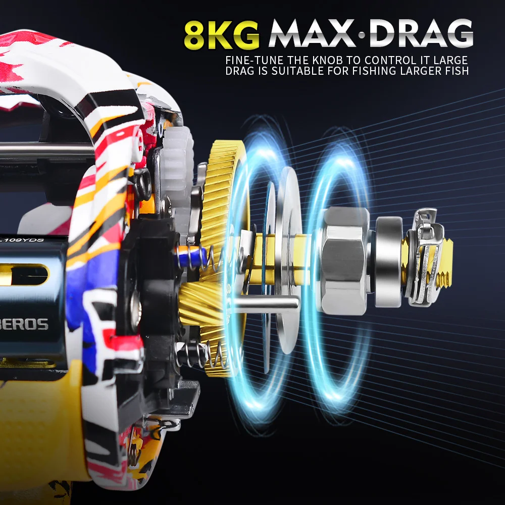 La potencia de arrastre de 3:8 KG y la mayor capacidad de la línea pueden resistir fácilmente el impacto de peces grandes.