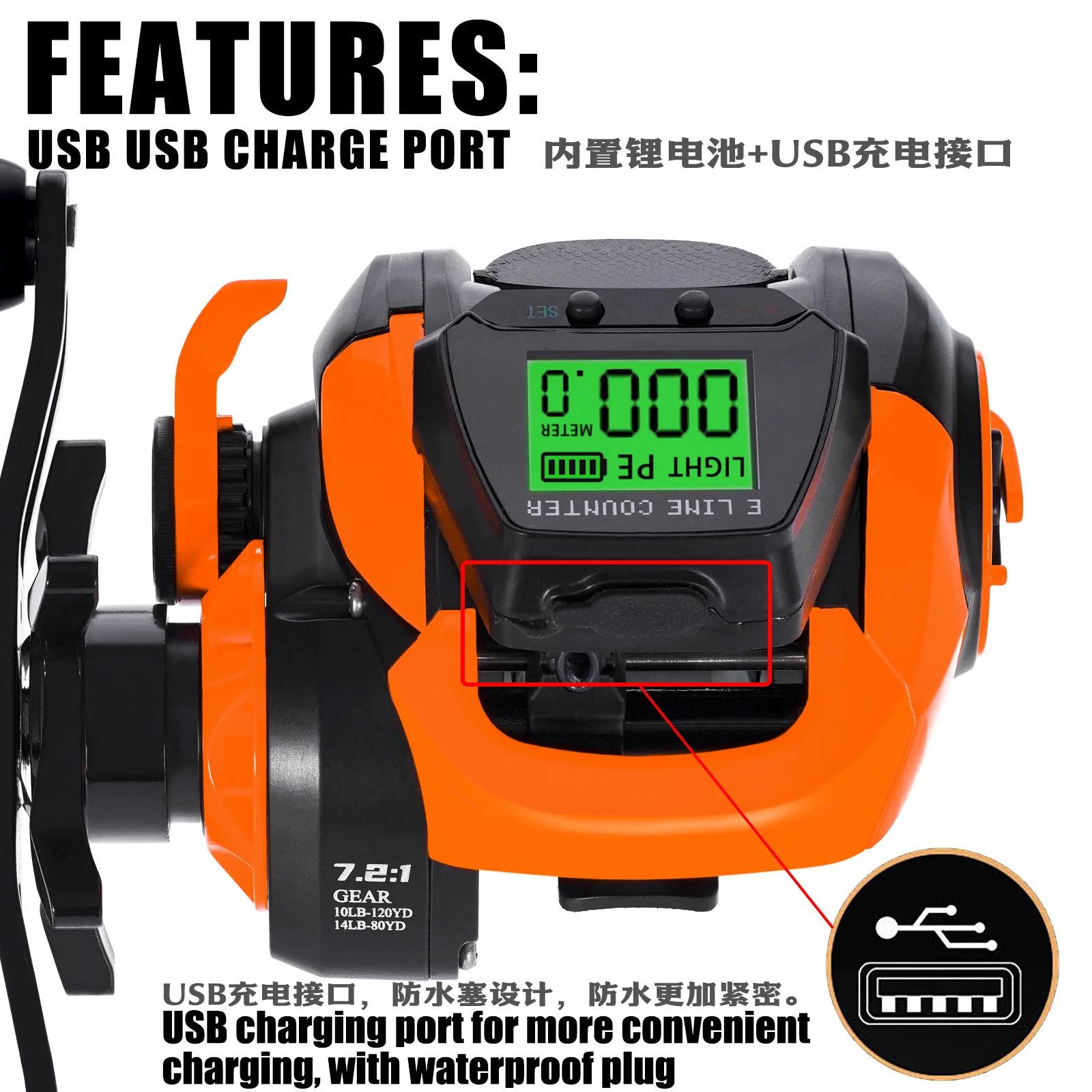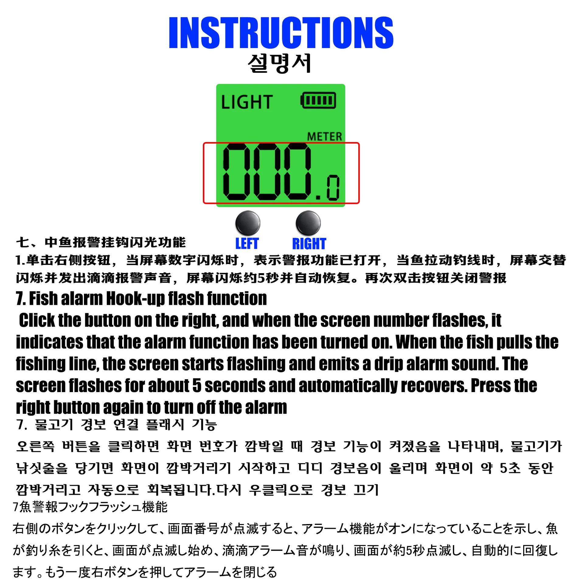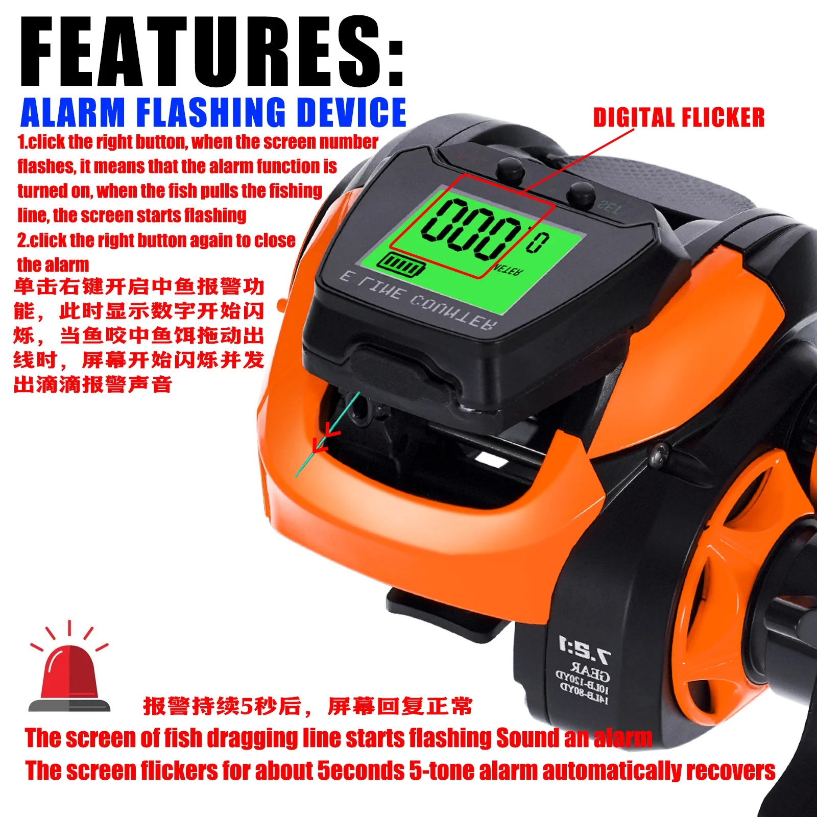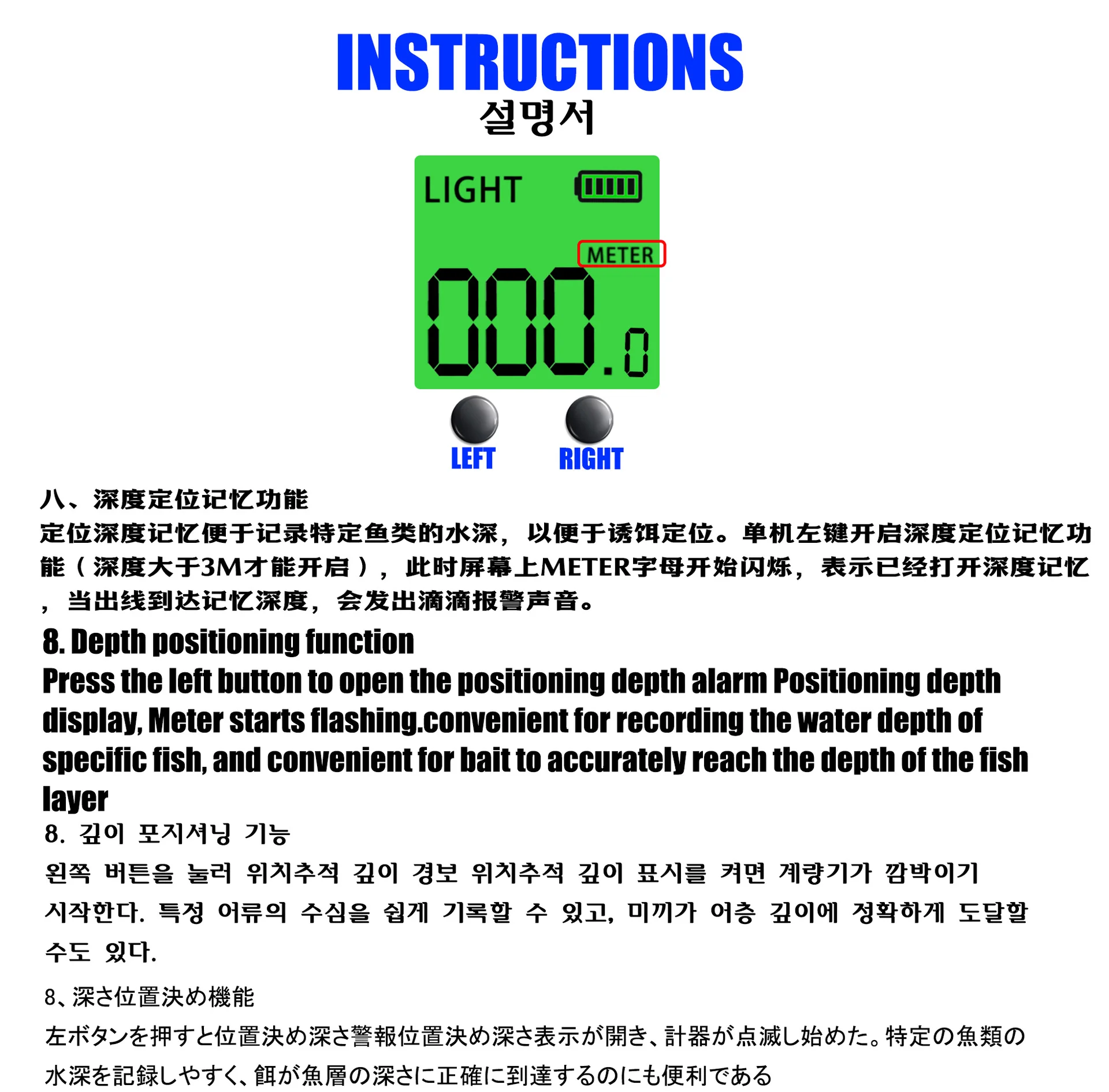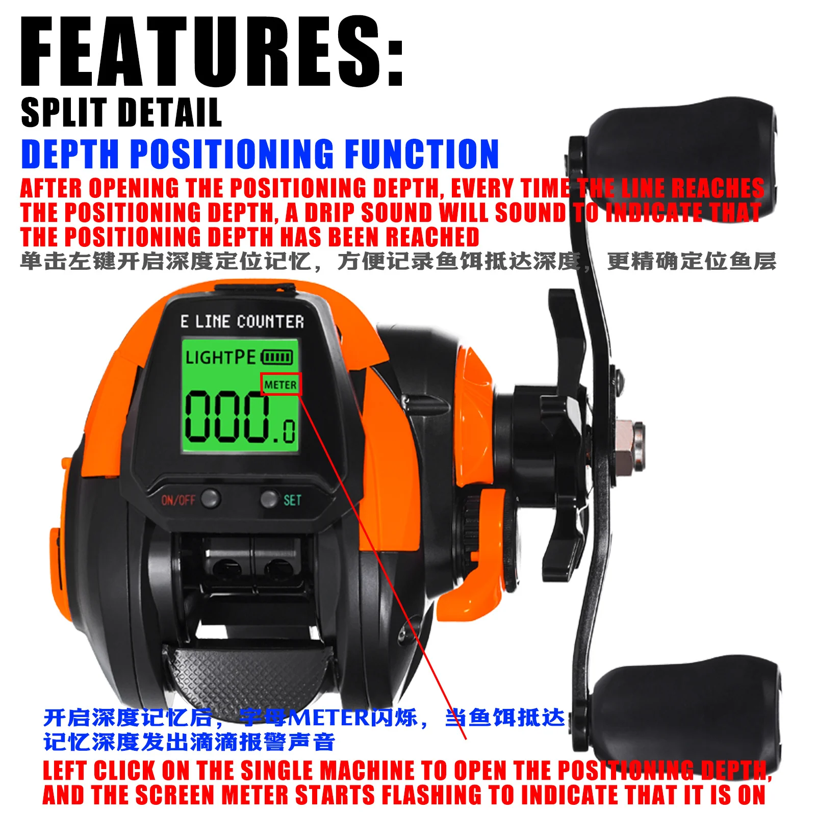 8: Pantalla digital que puede ajustar la profundidad de pesca adecuada para los peces según sus diferentes profundidades de agua.