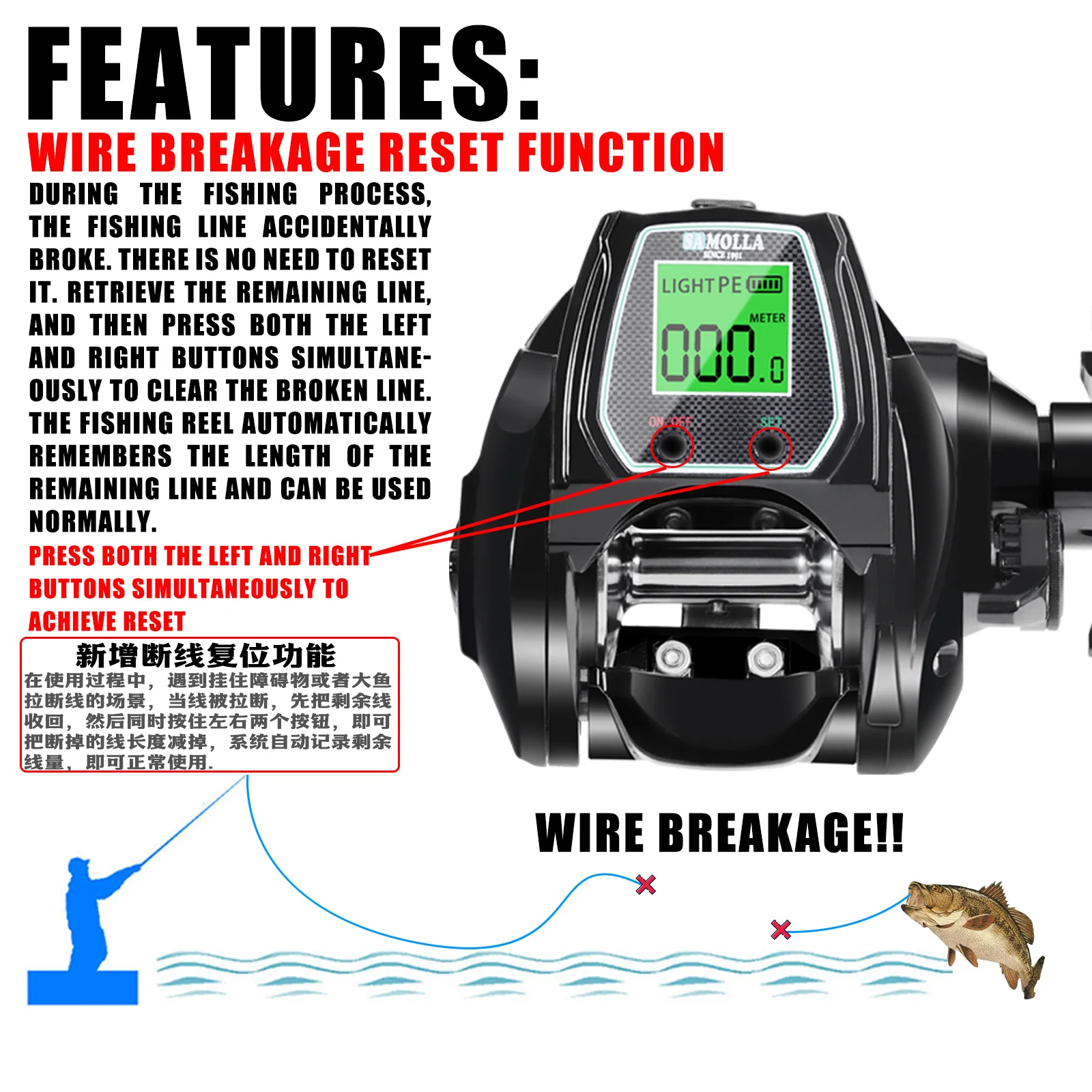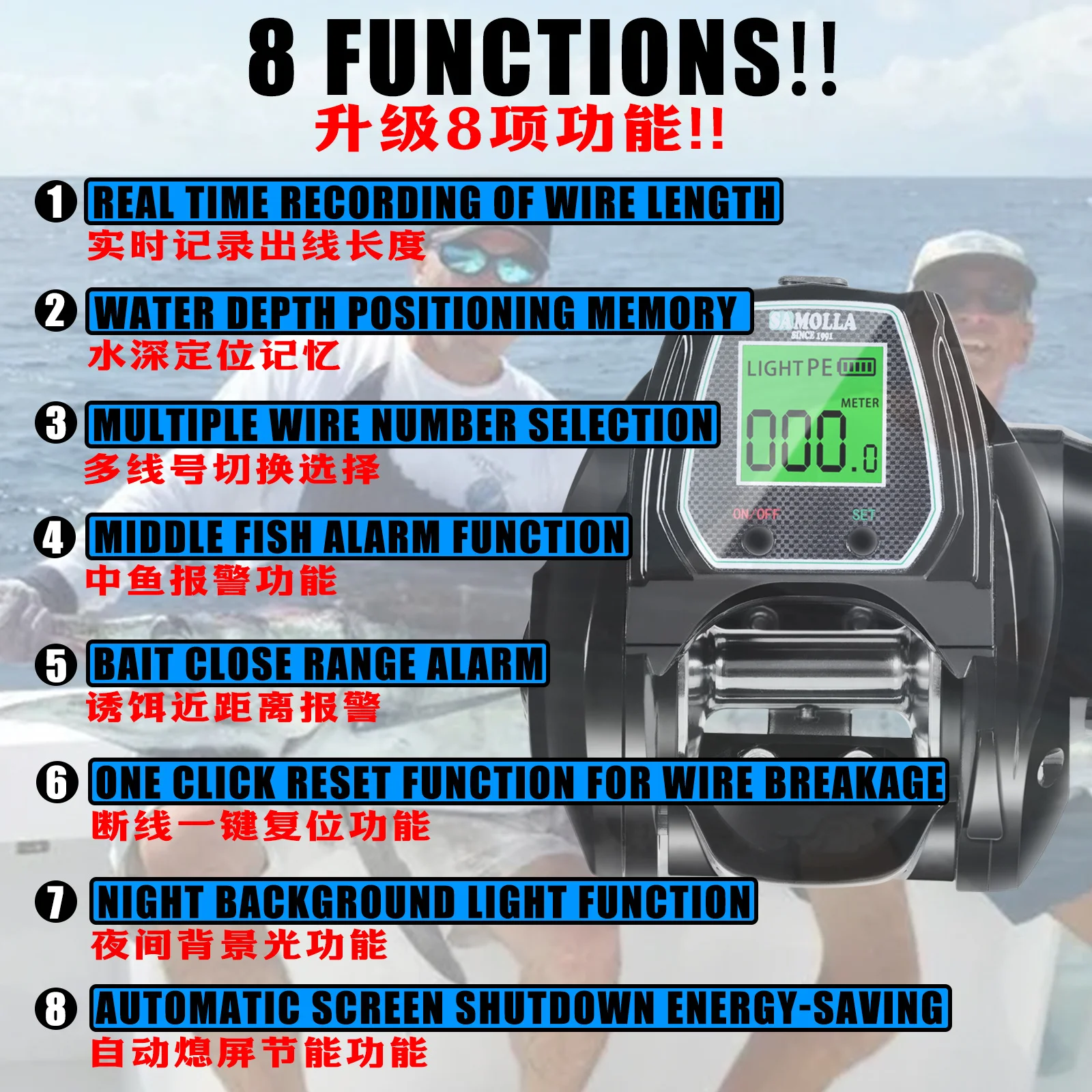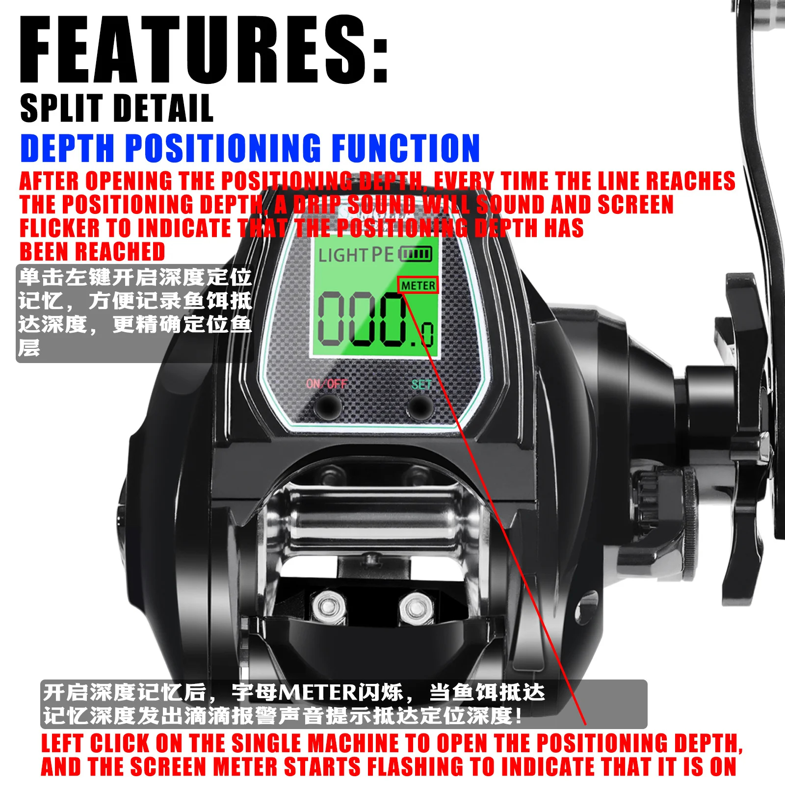 8: Pantalla digital que puede ajustar la profundidad de pesca adecuada para los peces según sus diferentes profundidades de agua.